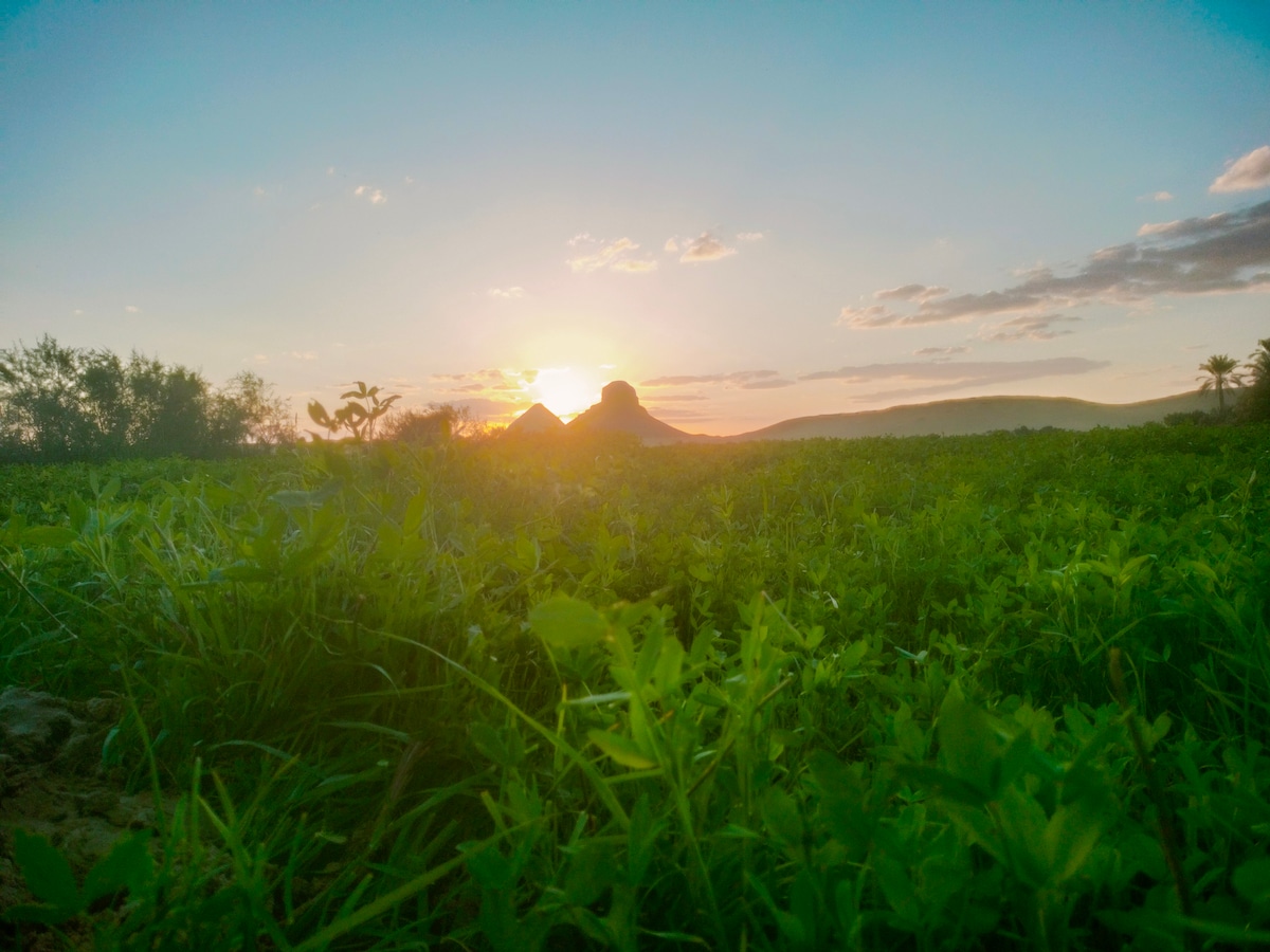Privé-rusthuis in de buurt van de Sakkara-piramides, omgeven door natuur en open uitzichten. De boerderij is de thuisbasis van paarden en biedt een unieke en authentieke landelijke sfeer. Geniet van rustige ochtenden, prachtige zonsondergangen en een rustig toevluchtsoord weg van de stad. Ideaal voor koppels, kleine groepen en reizigers die op zoek zijn naar privacy en een speciaal verblijf in de buurt van Caïro.