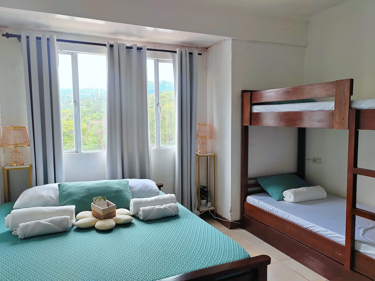 Vergeet je zorgen in dit ruime en serene ruimte-appartement met panoramisch uitzicht op de stad vanaf ons balkon. Gelegen aan de steengroeve van Middle Rock en dicht bij toeristische plekken. Burnham Park, Lourdes Grotto en Mirador Heritage and Eco Park ligt op een paar minuten afstand. Zeer toegankelijk voor het openbaar vervoer. Neem gewoon een Jeepney of taxi voor het huis. We hebben een beveiligde parkeerplaats. PLDT Fiber Wifi Connection voor medewerkers van thuiswerken. 60inch smart-tv, gemeubileerde woonkamer/keuken/schoon beddengoed/handdoeken.