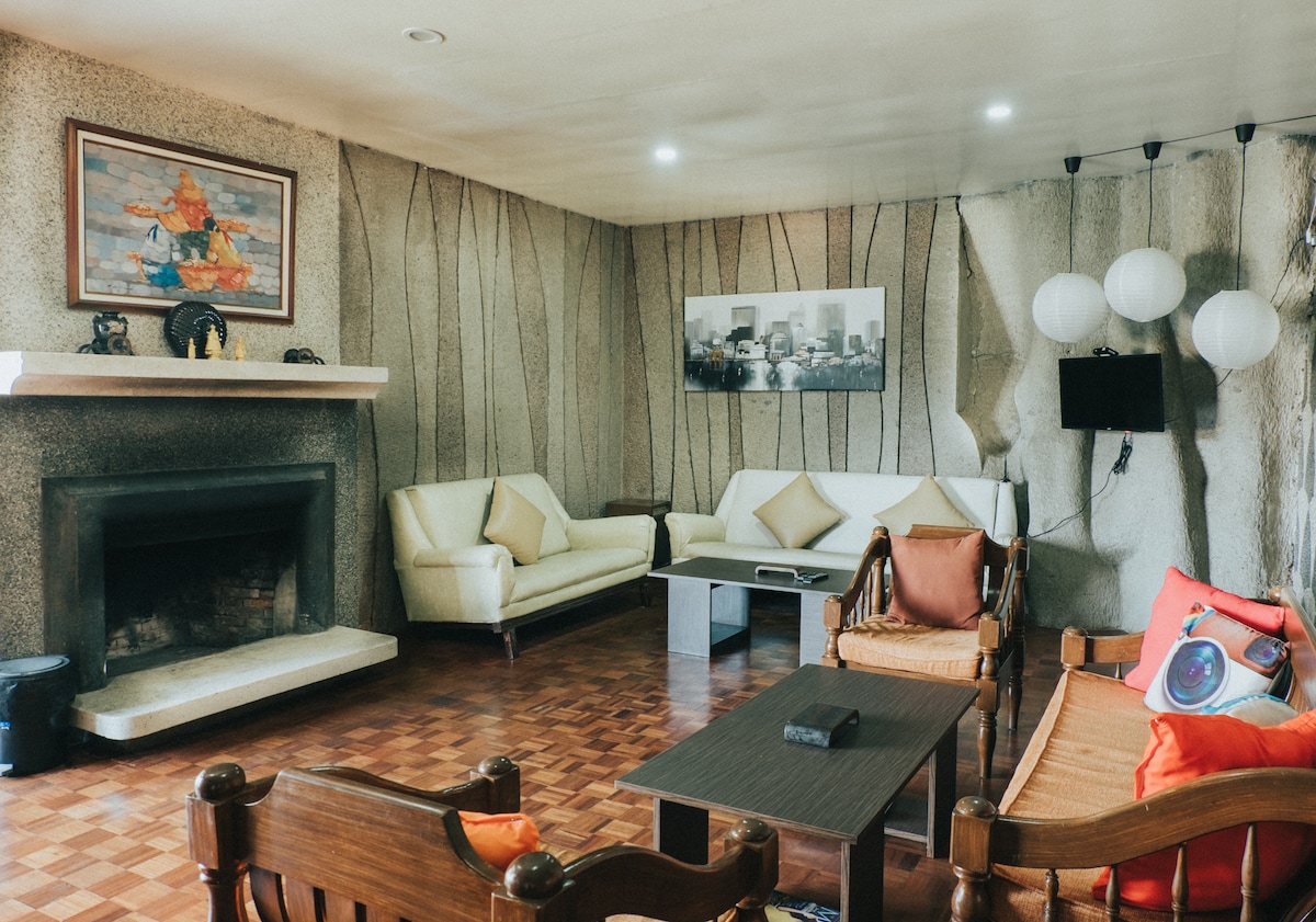 Geniet van uitzicht op de bergen en frisse lucht in dit gezellige, stijlvolle en charmante huis op 10 minuten van restaurants en attracties zoals Camp John Hay, Mines View Park, The Mansion House en anderen. Deze huisdiervriendelijke en rolstoeltoegankelijke woning is perfect voor gezinnen en vrienden en biedt een binnenhaard, twee vuurkorven in de buitenlucht, vier slaapkamers met badkamers, een complete keuken, buiten dineren, voor- en achtertuinen; kabel-tv, karaoke-machine en snel internet voor diegenen die vanuit huis willen werken.