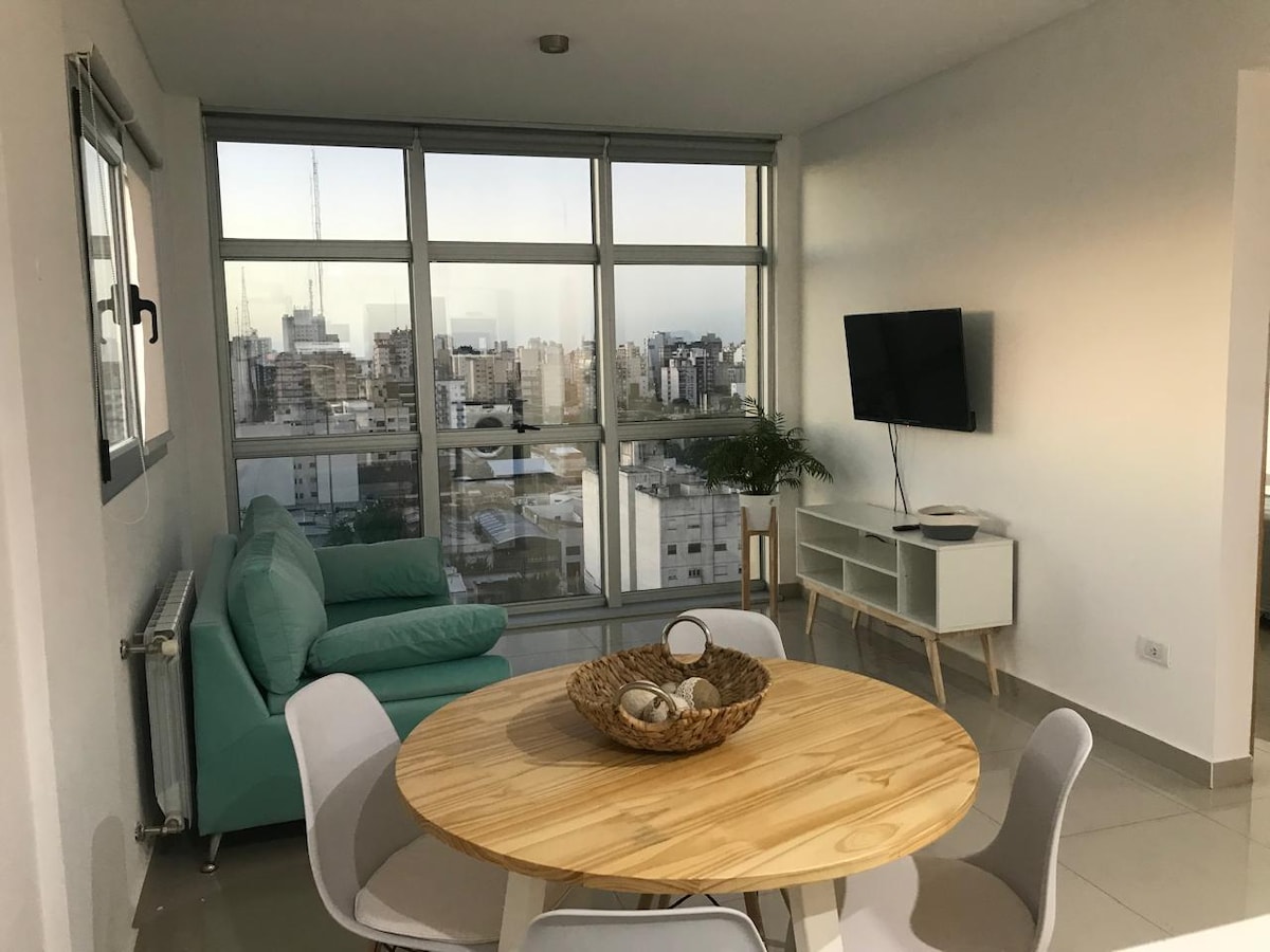Moderno departamento en piso 12 del Edificio Zeus, con vista panorámica a la ciudad. Totalmente equipado, luminoso y funcional. Cuenta con cocina completa, lavarropas, Smart TV, Wi-Fi y calefacción por radiadores.