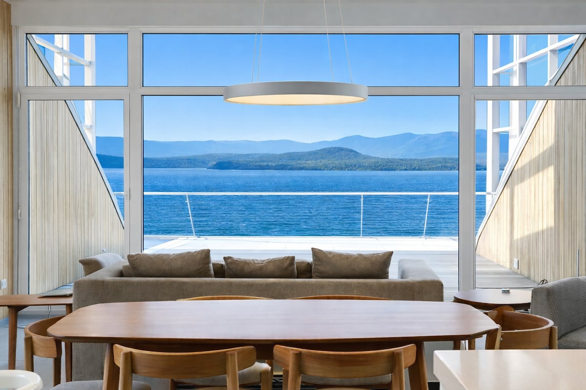 Moderne afdeling met uitzicht op het meer