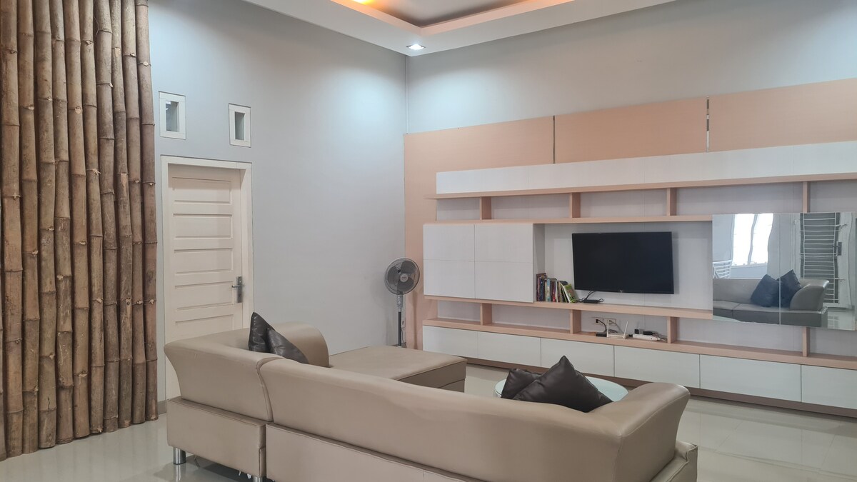 Welcome to Banda Aceh! This home comes with three comfy bedrooms and a spacious living room that will fit you and your family or friends Amenities: 1. Hot water and toiletries (Shampoo, Body Foam, tooth brush and tooth paste) 2. Personal care (Combs, shower cap, Hair dryer) 3. Coffee and tea 4. Tissue box 5. Towels and slippers 6. Free Wifi and Netflix 7. Free parking In addition to these, for longer stays we offer free cleaning service every two nights