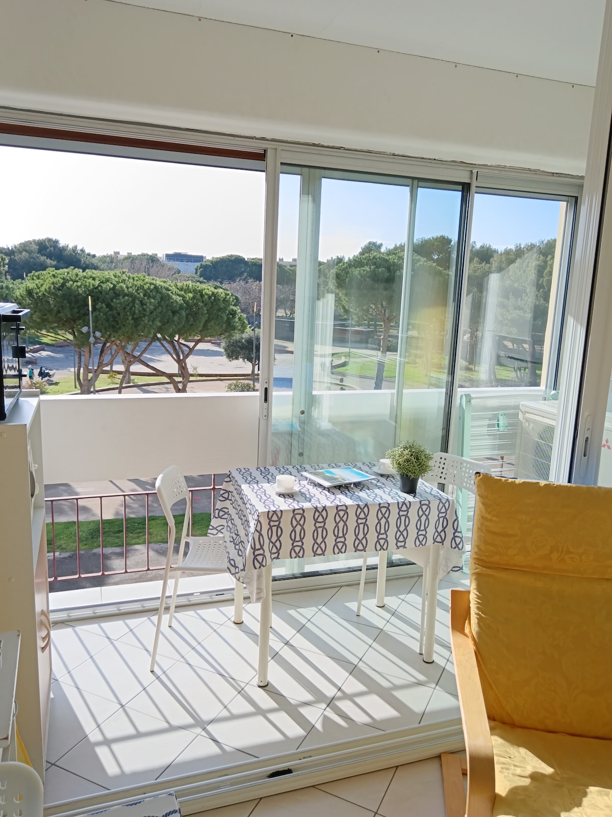 Hallo, ik zorg voor een T2-appartement van 40 m² inclusief een woonkamer met uitstekend 140 beddengoed, TV, WiFi, AIRCONDITIONING een keuken uitgerust (elektrische borden, oven, magnetron, wasmachine) 1 slaapkamer met bed in 140 een badkamer een toilet is een groot balkon. Rustige woning met eigen en beschermde parkeerplaats. Dichtbij het stadscentrum, de zee, steden als Sète en Montpellier, zal het perfect zijn om volledig te genieten van je verblijf onder de zuidelijke mediterrane zon!