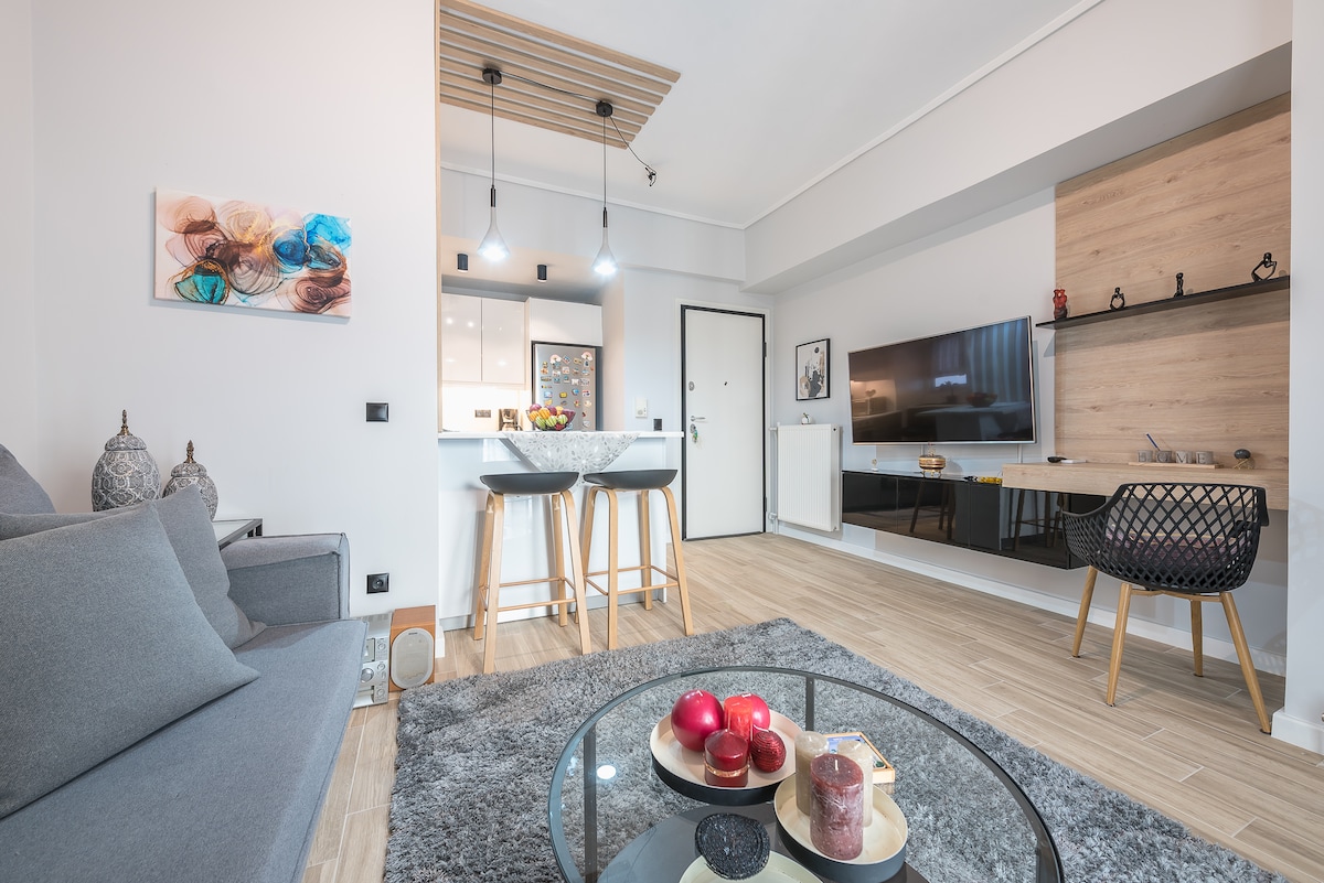 Stap in een woning waar het industrieel-chique ontwerp van zachte grijze tinten en houten armaturen wordt aangevuld met heldere kleuren. Probeer te koken met lokale gerechten in de keuken en zak weg in de comfortabele bank na een dag vol bezienswaardigheden. Licentie/registratienummer: 3089588 Bij aankomst is betaling van de kosten voor klimaatbestendigheid, in overeenstemming met de wetgeving (Wet 5073/2023,FEK:B7535/31.12.2023), van € 8 per nacht, vereist van april tot oktober Je krijgt een betalingsbewijs.