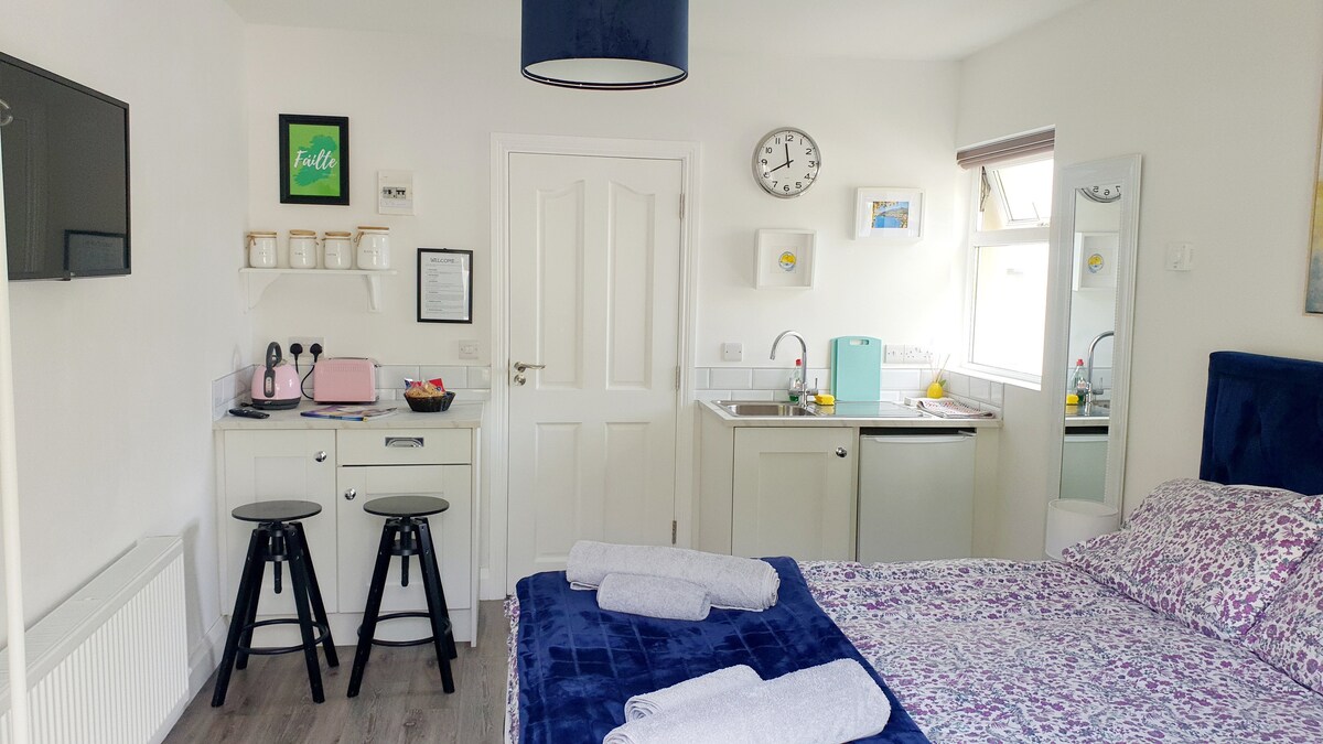 Ontspan in deze stijlvolle, lichte, onlangs gerenoveerde ruimte. Je hebt een koelkast, wastafel, waterkoker en broodrooster (geen kookfaciliteiten), een eigen badkamer, een luxe tweepersoonsbed en een smart-tv. Deze ruimte heeft een eigen ingang en ligt op vijf minuten rijden van het centrum van het prachtige stadje Killarney. Er is een Supervalu-winkel op minder dan twee minuten rijden afstand. Een comfortabele, uitnodigende ruimte die geweldig is als uitvalsbasis voor de Ring of Kerry en om te genieten van alles wat Killarney te bieden heeft.