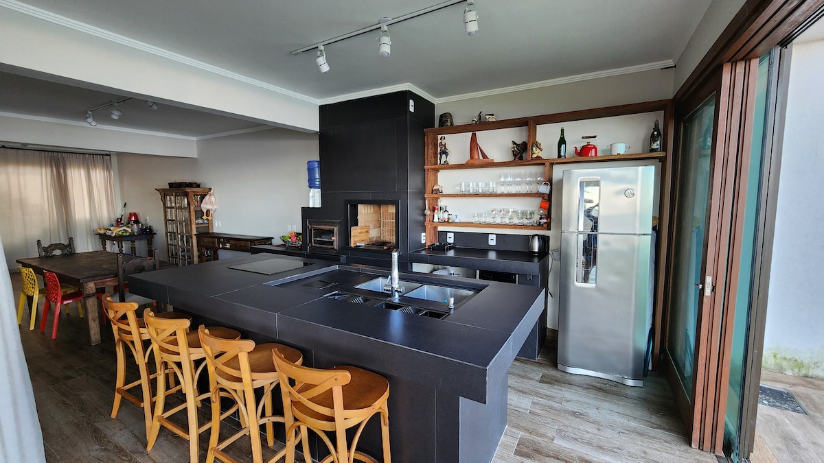 Huis aan het water — comfort en rust voor je beste momenten. Gelegen in de wijk Salinas, een chique gebied van Barra do Sul, biedt ons huis de perfecte omgeving om te genieten van onvergetelijke dagen met familie en vrienden. Er zijn 6 slaapkamers, plus een grote woonkamer en keuken met uitzicht op de zee, die een complete ervaring en verbinding met de natuur bieden Alle kamers hebben airco, wifi en een volledige barbecue, ideaal voor het verzamelen van de mensen van wie je houdt.