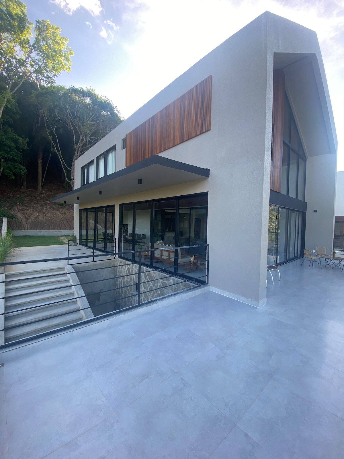 Moderne, ruime woning met veel natuurlijke verlichting - nieuw gebouwd in het Águas da Serra condominium. Rustige straat en zeer dicht bij het recreatiegebied van het condominium. 5 en-suite slaapkamers met airconditioning. Volledige keuken, wasserette met tank en waslijn. Wifi in het hele huis. Het heeft een halve badkamer.