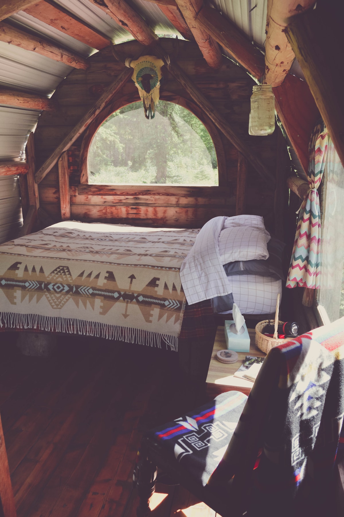 Een schilderachtige, privé, handgemaakte hut in het bos met uitzicht op een beek en buffelweiden omringd door een majestueus uitzicht op de Canadese rotsen. Het heeft een zeer schoon aangrenzend toilet. Deze hut is off the grid, kaarslicht, buiten- en binnenkeuken, houtkachel en propaan back-up warmte, romantisch en gezellig, eigen vuurplaats, met Super Host-status! Nog 4 privéverhuurders ook op de ranch op airbnb, allemaal beginnend met Buffalo Ranch~ Guest House/Sauna Cabin/Wagon in the Woods/Bunkhouse