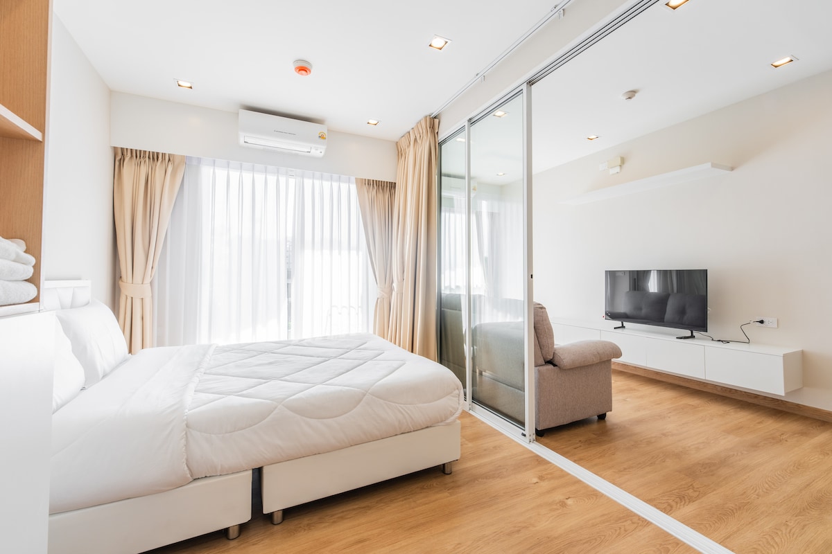 40 m² eenkamerappartement met bad en balkon LOFT-D4/3 personen/zwembad op het dak/dichtbij RCA/dichtbij nachtmarkt/dichtbij tonglor