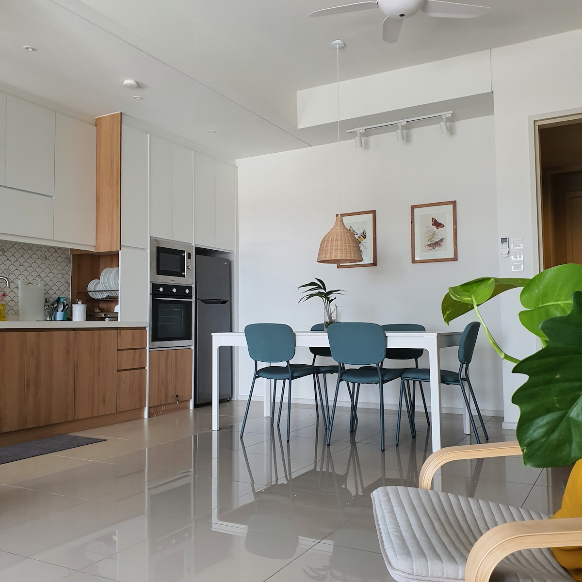 Enjoy a stylish modern of japanese interior experience at this centrally-located place. Designed by conquering the complecity and preseving simplicity. Fully equipped with premium utensil, fully air conditioned smart tv and wifi. what best about this space is the location. Center of shopping area and chains of great restaurant in Bangi and coffee shop. Max of 7 pax, with one king, one queen and 2 single beds. You will amaze with lighting arrangement, fresh green plant and our hospitality.