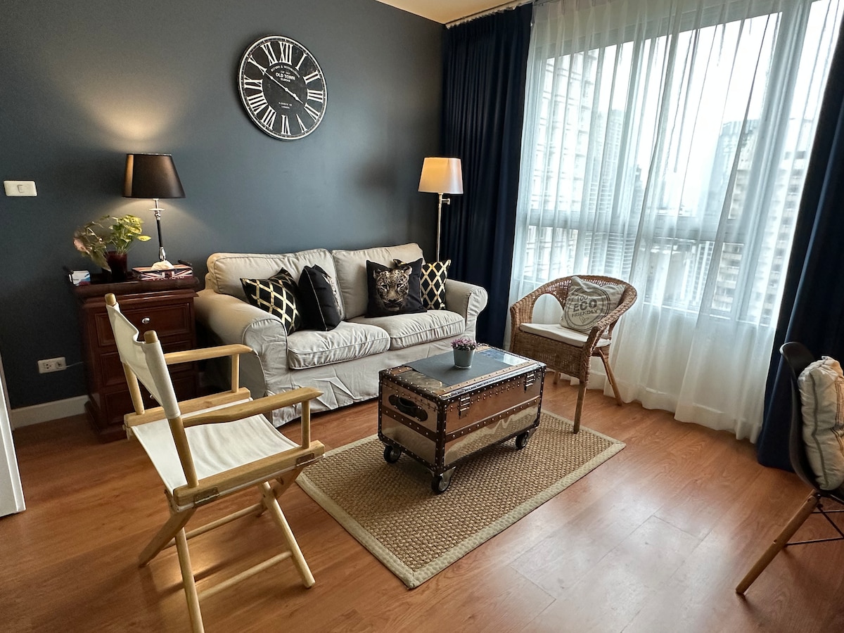 Welkom in ons gezellige appartement met hoge plafonds op de 27e verdieping van Edge Sukhumvit 23. Het ligt op slechts enkele stappen van BTS Asok en MRT Sukhumvit. De woonkamer is licht met ramen van volledige hoogte, terwijl de slaapkamer in loftstijl je zowel een slaapruimte boven als een werkruimte beneden met een extra bed biedt. Het beste van alles is dat het zwembad en de fitnessruimte zich op dezelfde verdieping bevinden, waardoor je gemakkelijk kunt ontspannen en actief kunt blijven tijdens je verblijf.