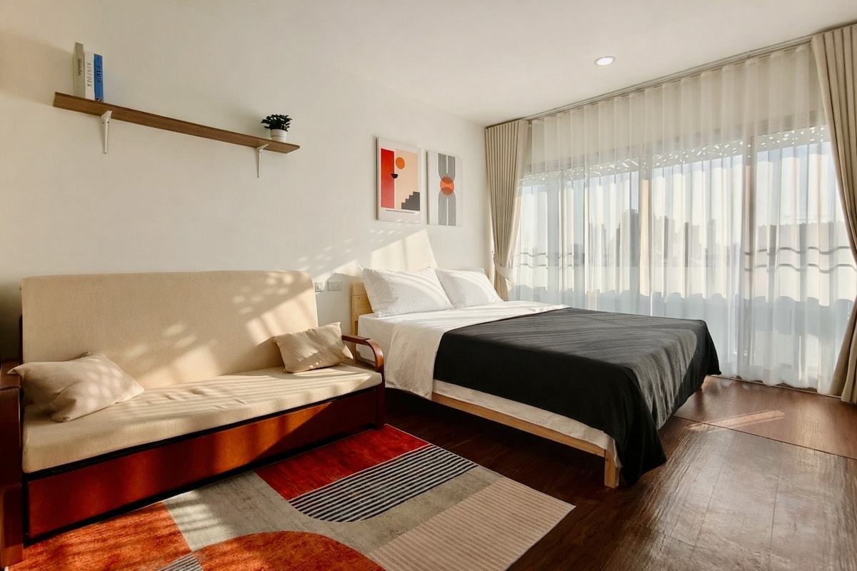 40 m² eenkamerappartement met bad en balkon LOFT-D4/3 personen/zwembad op het dak/dichtbij RCA/dichtbij nachtmarkt/dichtbij tonglor