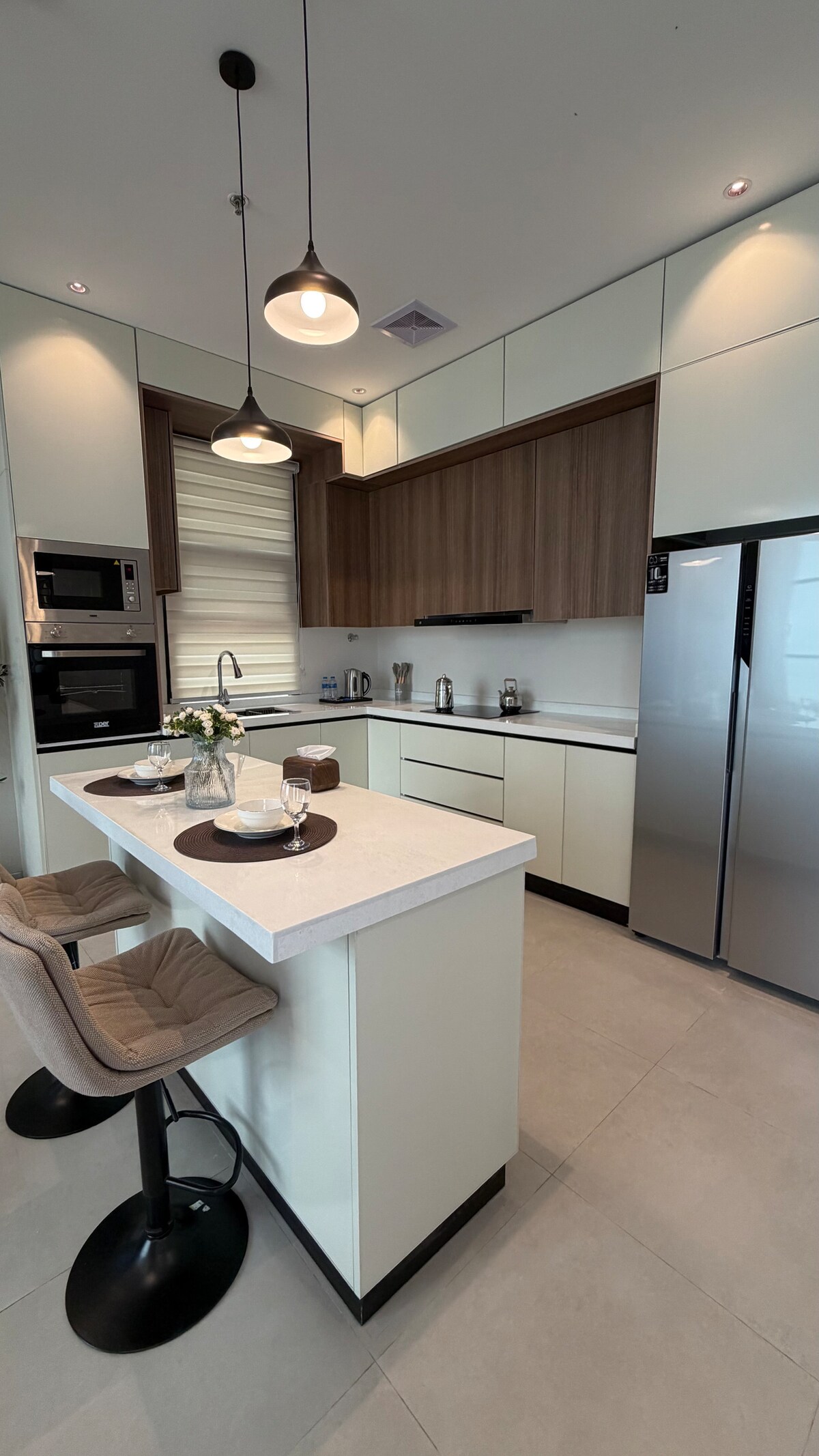 Een luxe hotelappartement gelegen in het hart van de stad Khobar, in een verfijnde en rustige buurt, op enkele minuten van de Corniche, Prince Turki Street en Hess Square. Het beschikt over een strategische locatie die de nabijheid van de meest vitale gebieden en rustige accommodatie combineert. Het is ingericht met zeer modern meubilair en bevat een luxe jacuzzi, met doordachte verlichting die warmte en elegantie aan de plek toevoegt. Opmerking: het is ten strengste verboden om feesten of bijeenkomsten te houden, om de privacy en het comfort van de bevolking te behouden. (SAR 500 Verzekering wordt terugbetaald na het uitchecken)