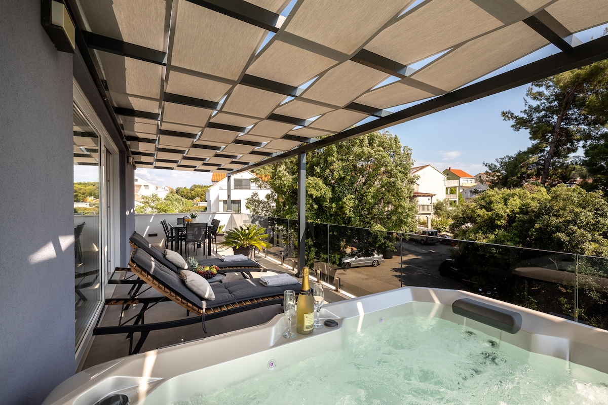 Apartment is situated on great location, with a fabulous seaview from all the rooms. Walking distance to the center, Old Town, shops, restaurants and public transport (bus stop and ferry port). Just stairs to the promenade, sailing school, City beach and small grocery shop with fresh fruit, vegetable and pastries. Completly equipped: A/C, SMART TV, Wi-Fi, Dish washer, Laundry. Consists of living room with kitchen and dining room, two bedrooms, bathroom and a small terrace with seaview.