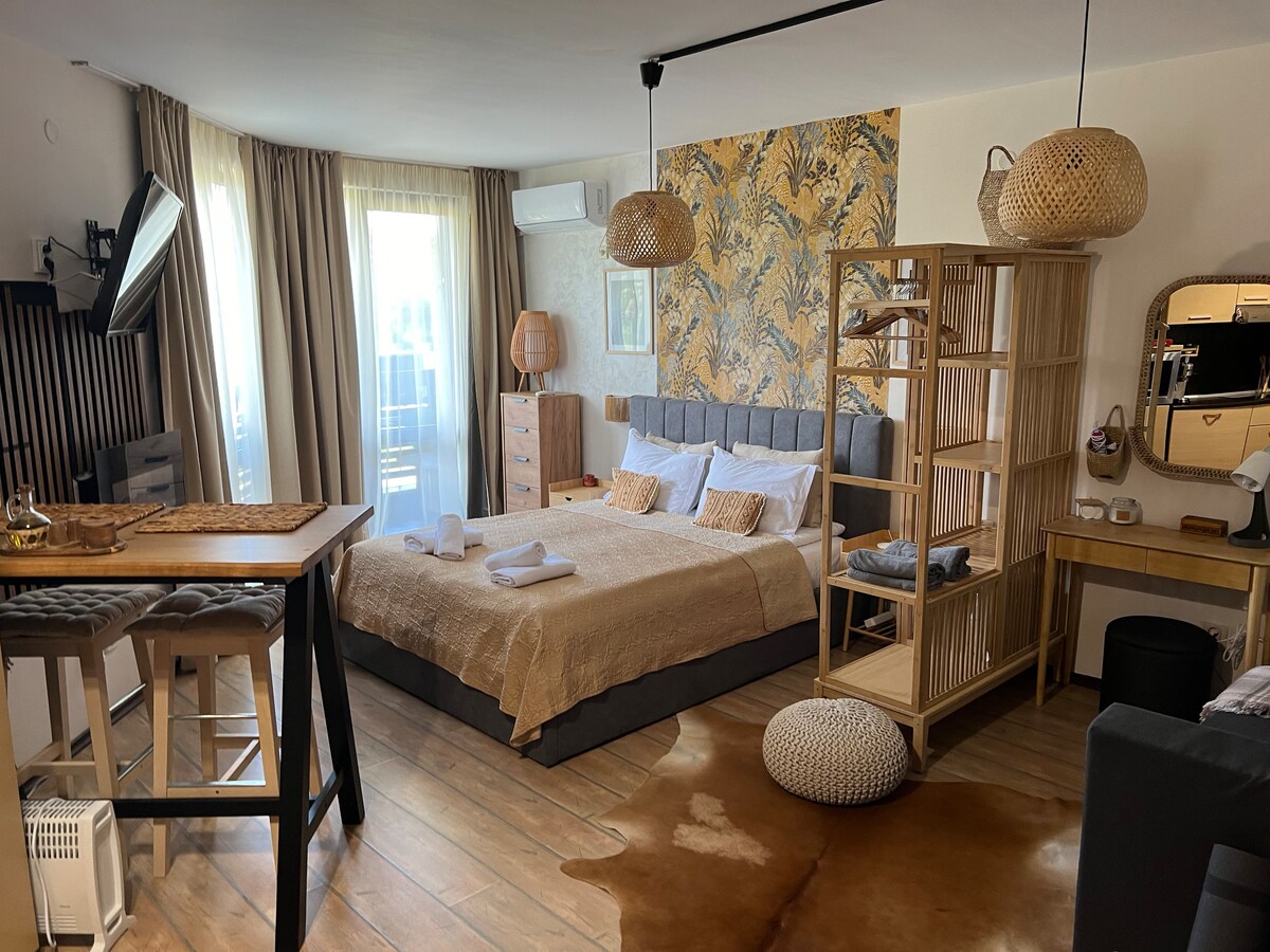 Huiselijke studio in Bansko, gratis zwembad en fitnessruimte!