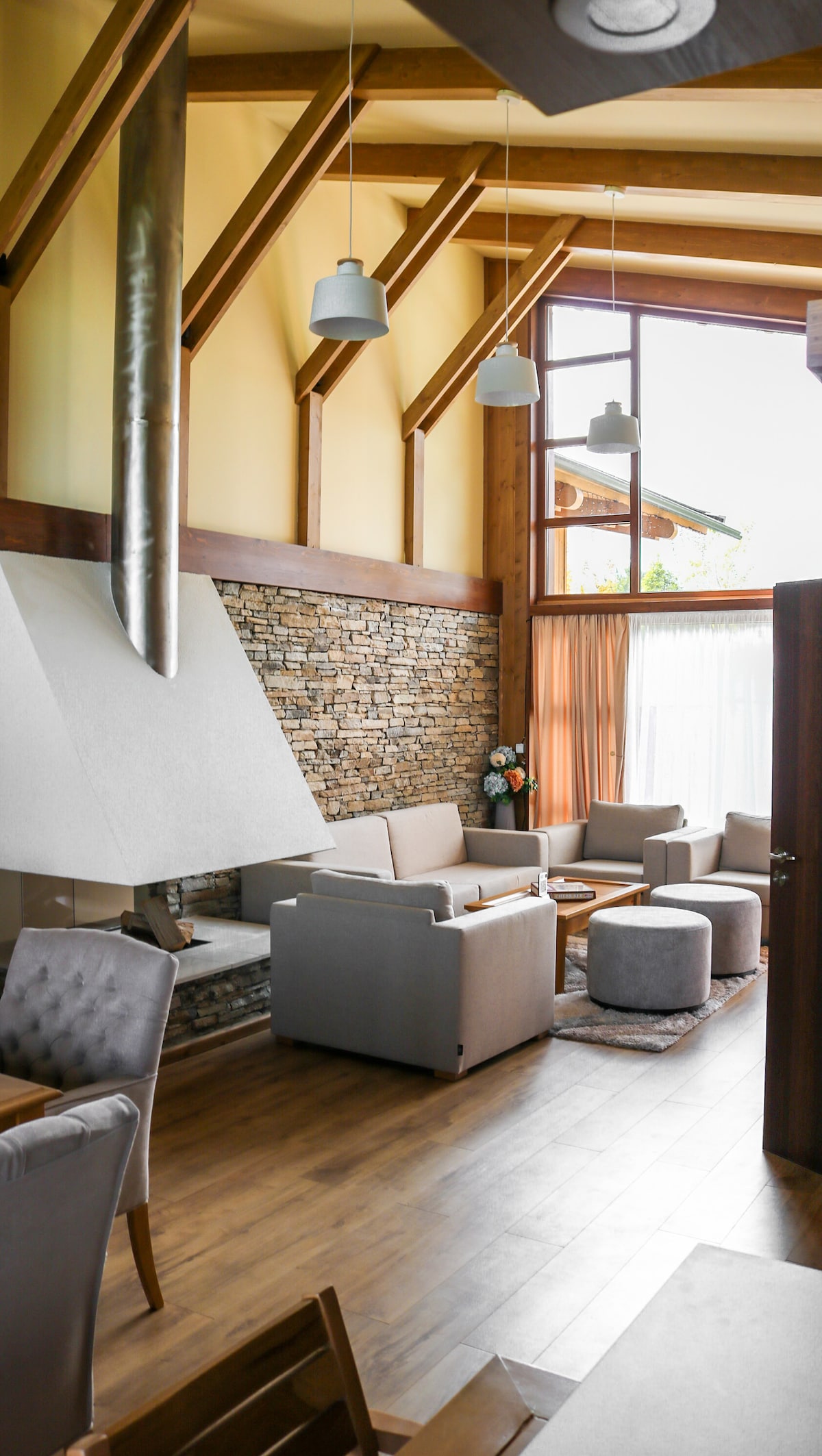 Ontdek je perfecte uitje in deze luxe villa van 200 m ² met twee verdiepingen, genesteld in het rustige dorp Banya. Ideaal voor gezinnen of groepen, de villa biedt vier ruime slaapkamers, een volledig uitgeruste keuken en een gezellige woonkamer met een open haard voor ultieme ontspanning. Geniet van de privacy van je eigen mineraalwaterzwembad, bekend om zijn helende eigenschappen, midden in het comfort van een grote, goed onderhouden tuin. Geniet van het koken op de buitenbarbecue en creëer een onvergetelijke maaltijd.
