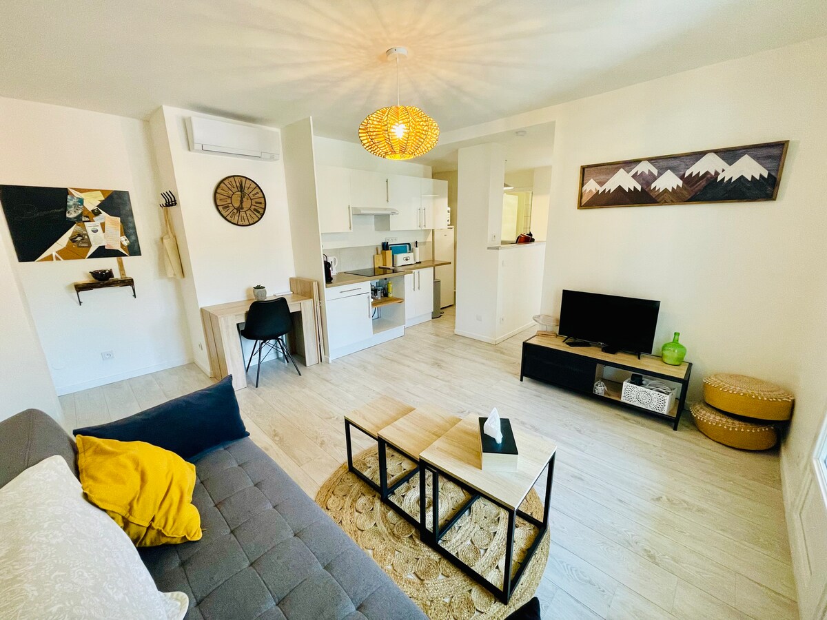 Prachtige accommodatie nieuw en gezellig, idela voor een stel of maximaal 3 personen in Argelès sur Mer. Het is gelegen in een rustig dennenbos, op 100 meter van het strand en winkels, en dicht bij alle toeristische activiteiten! - Gratis parkeerplaats (kleine garage) - Airconditioning -terras - Uitgeruste keuken - Tv - De wifi - Geen trap - Linnen en verbruiksartikelen (koffie, thee, douchegel, wasserette, vaatwastabletten) inbegrepen. Ontspannen in deze rustige en moderne accommodatie.