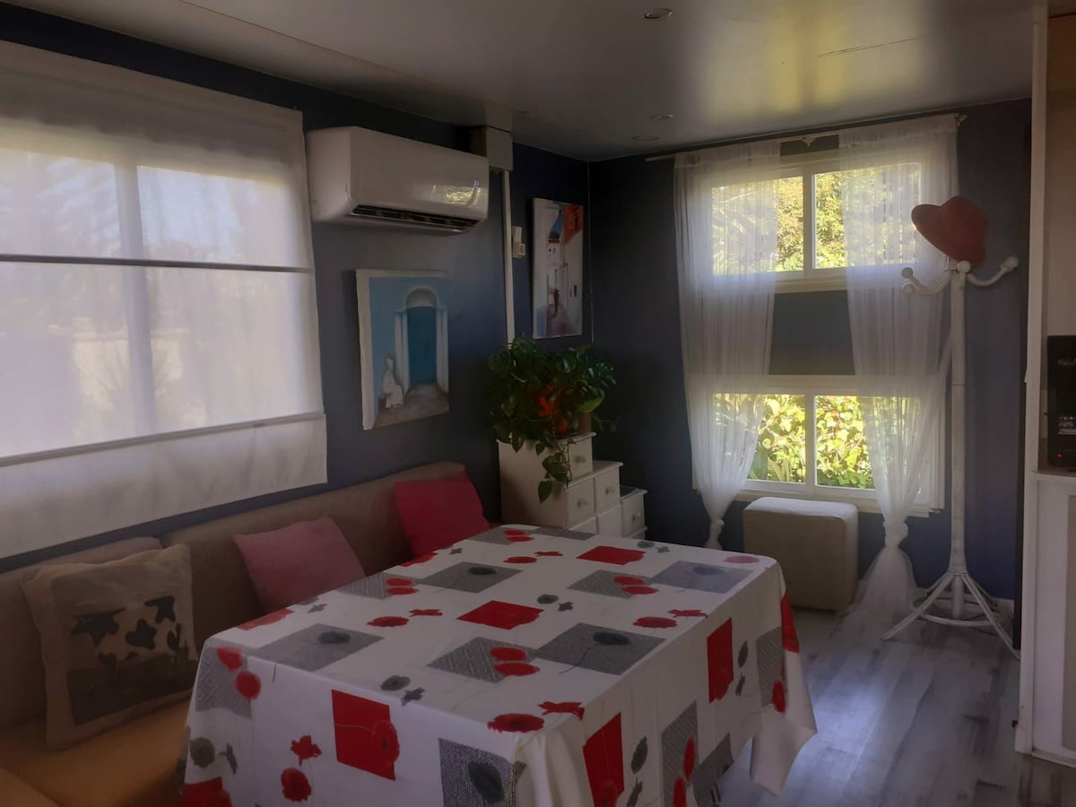 Bungalow met zwembad en chillout op 5 minuten van het strand