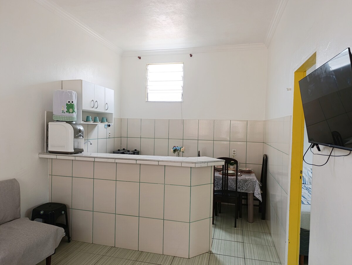 Rustige, eenvoudige en gezellige ruimte voor wie op zoek is naar bezienswaardigheden in Belém do Pará of voor zakelijke bezoeken. Het appartement/kitnet is een uitstekende prijs-kwaliteitverhouding. Wij zijn gevestigd in de wijk Maracangalha, op 2,9 km van de internationale luchthaven Belém, en we hebben alle keukengerei en apparaten voor meer comfort en gemak.
