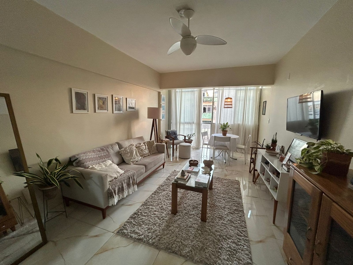 🏡 Apartamento Moderno e Bem Localizado Desfrute de uma estadia confortável neste apartamento com tudo o que você precisa: Acomoda 4 pessoas 2 Quartos aconchegantes Super central de ar-condicionado e ventilador teto Sala com varanda e rede para relaxar Cozinha moderna equipada com utensílios completos Wi-Fi rápido para trabalhar ou se divertir online Estacionamento disponível no local 📍 Excelente localização restaurantes padarias
