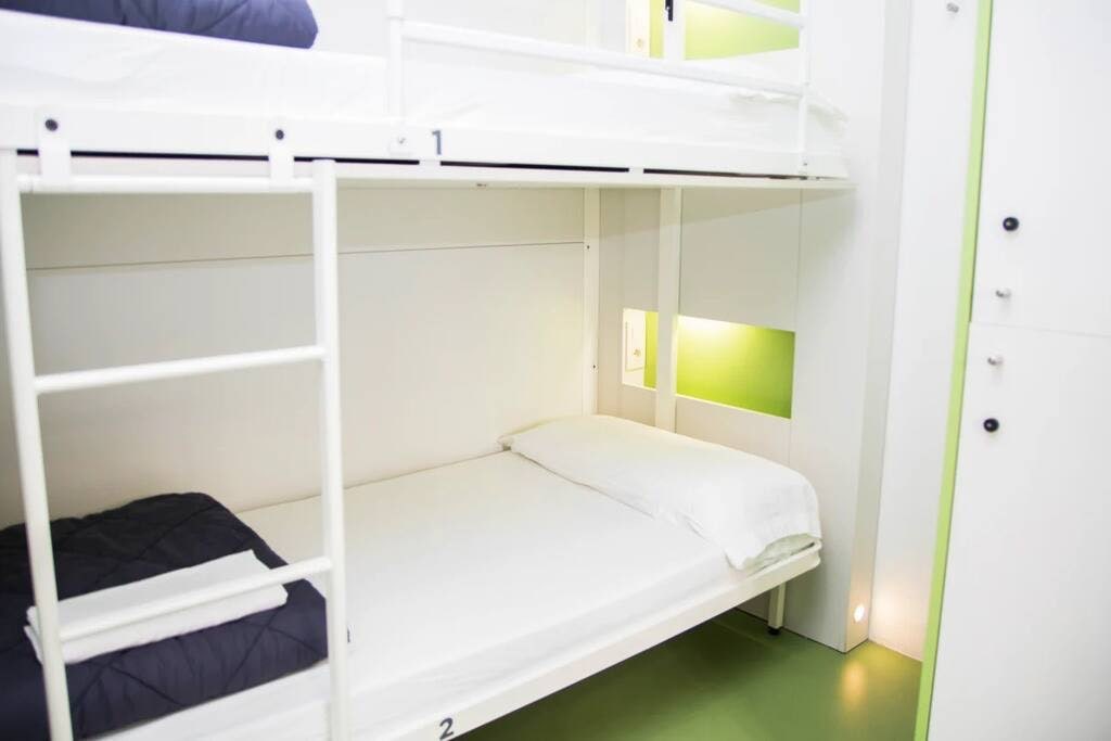 Bed in een vrouwenslaapzaal met 3 stapelbedden, met veiligheidskluisjes, individuele hoofdeinden, leeslamp, oplaadstation en airco. Sant Jordi Hostels - Gracia is een modern hostel gelegen in de meest bohemien buurt van Barcelona, El Barrio de Gracia. We hebben moderne faciliteiten, een leuke internationale sfeer en een vriendelijk personeel. Dit is een hostel met een vaste versnellingsthema dat een andere manier is om al het karakter en het leven dat Barcelona te bieden heeft te ervaren.