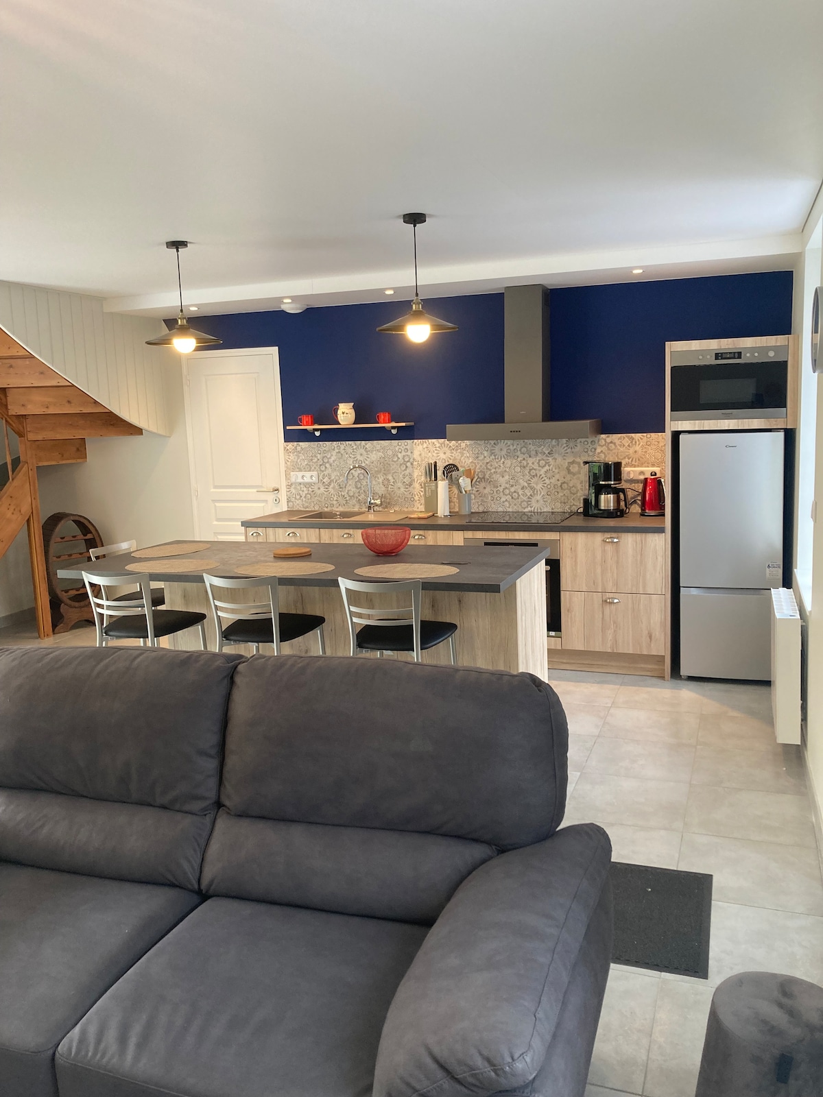 Onlangs gerenoveerde stenen schuur vol licht en kleur in een schattig dorp op slechts 1 km van de zee. Houten vloeren en natuurlijke isolatie geven een gevoel van warmte. De woonkamer boven leidt naar een zonnig dakterras of ga de keuken uit naar een schaduwrijke privétuin. Huisgemaakte maaltijden van zelfgekweekte of lokale producten beschikbaar op aanvraag, evenals bezoeken aan onze mini-boerderij en tuin. Goed ingerichte keuken met vaatwasser, inductiekookplaat, magnetron en koffiezetapparaat.