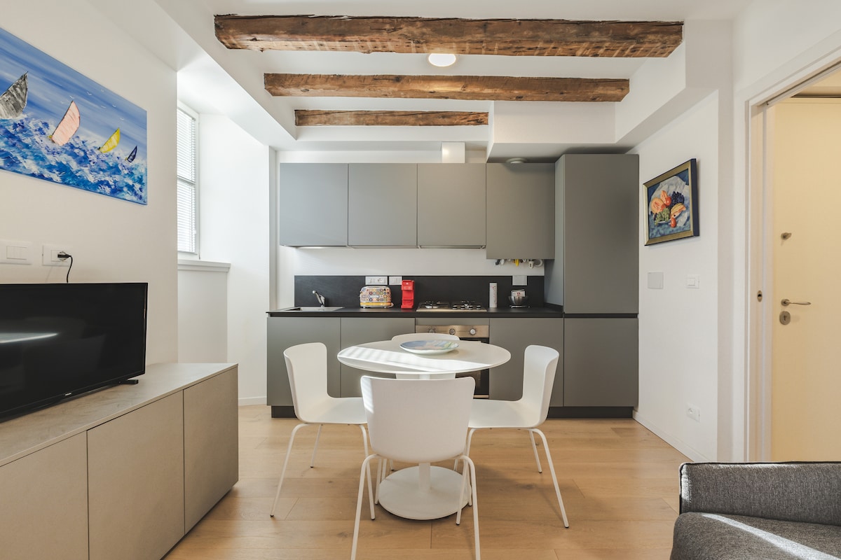 Mooi en gezellig appartement, op steenworp afstand van de zee en het historische centrum met zijn karakteristieke winkels, bars, restaurants aan zee, de jachthaven en de kleurrijke straten in Venetiaanse stijl PARKEER GRATIS, op de binnenplaats van het condo of langs de openbare straat Ideaal voor koppels, gezinnen met kinderen of werknemers in slim werken. Voorzien van alle gemakken om je verblijf onvergetelijk te maken