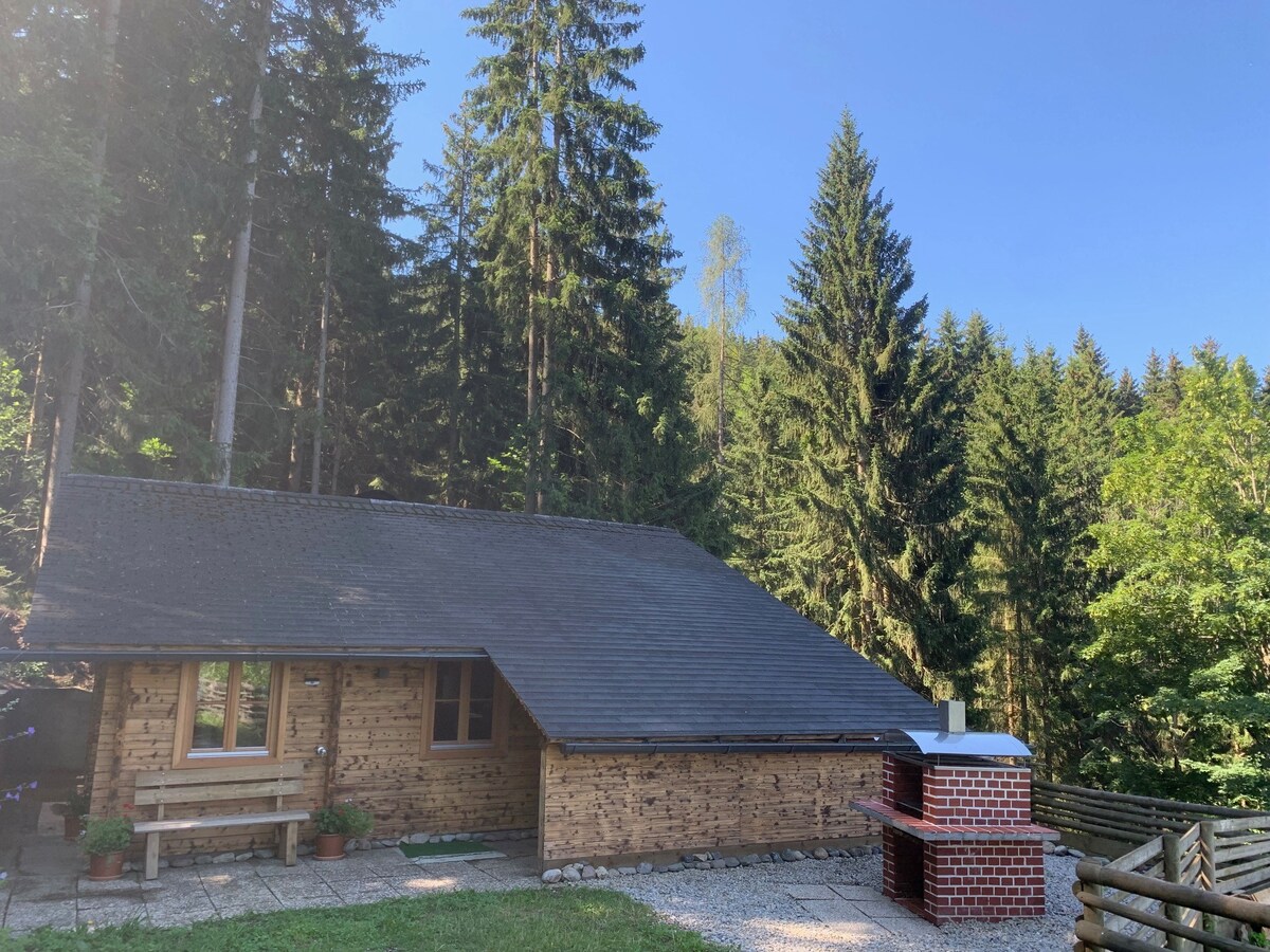 An old log house in the middle of the forest, surrounded by large trees, dense bushes and wide meadows, which was completely renovated 3 years ago. Silence and pure nature. It is located in Edelschrott, Styria, Austria in the middle of a forest on a clearing. 4 hectares of meadows and forests all round belong to the house and can be used freely. Full day, no matter what season. Absolutely no noise from cars, construction sites or anything else. Wifi !!