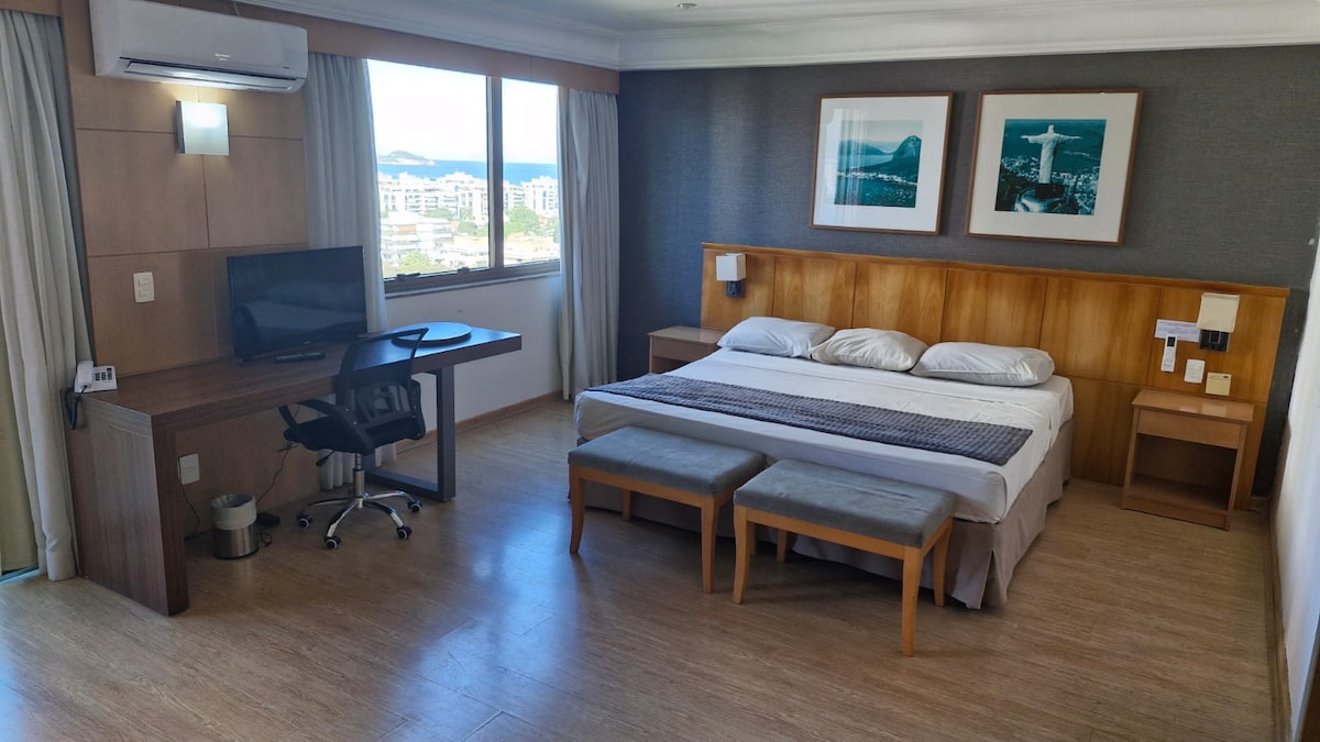 Geniet van een onvergetelijk verblijf aan het strand van Barra da Tijuca, waar luxe en rust samenkomen. Ontspan in het verwarmde zwembad met prachtig zeezicht, in een superluxe 63 m² 1-slaapkamer suite appartement, volledig uitgerust voor jouw comfort. Met dagelijkse schoonmaak, 24u-beveiliging, privéparking, fitness, sauna, jacuzzi en zwembad is dit de ideale plek om te genieten. Reis je met familie of vrienden? Bekijk ook mijn gloednieuwe luxe 2-slaapkamer suite via mijn profiel.