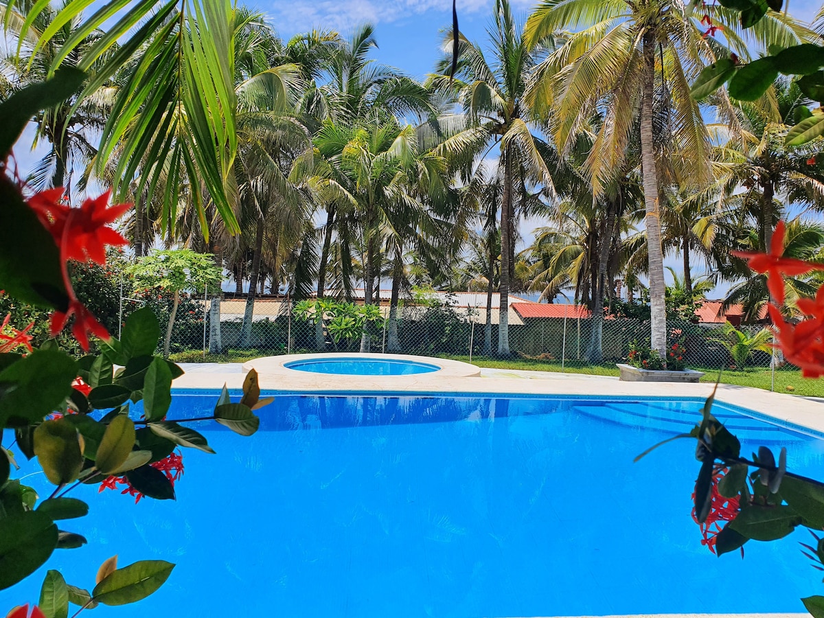 Ontspan met het hele gezin op deze plek waar rust ademend is. vijfde in Playa las Peñitas, Marquelia Gro. Voor het strand met uitstekend uitzicht op zee met eigen zwembad,palapa, grill, wifi, 6 slaapkamers met capaciteit voor 22 personen