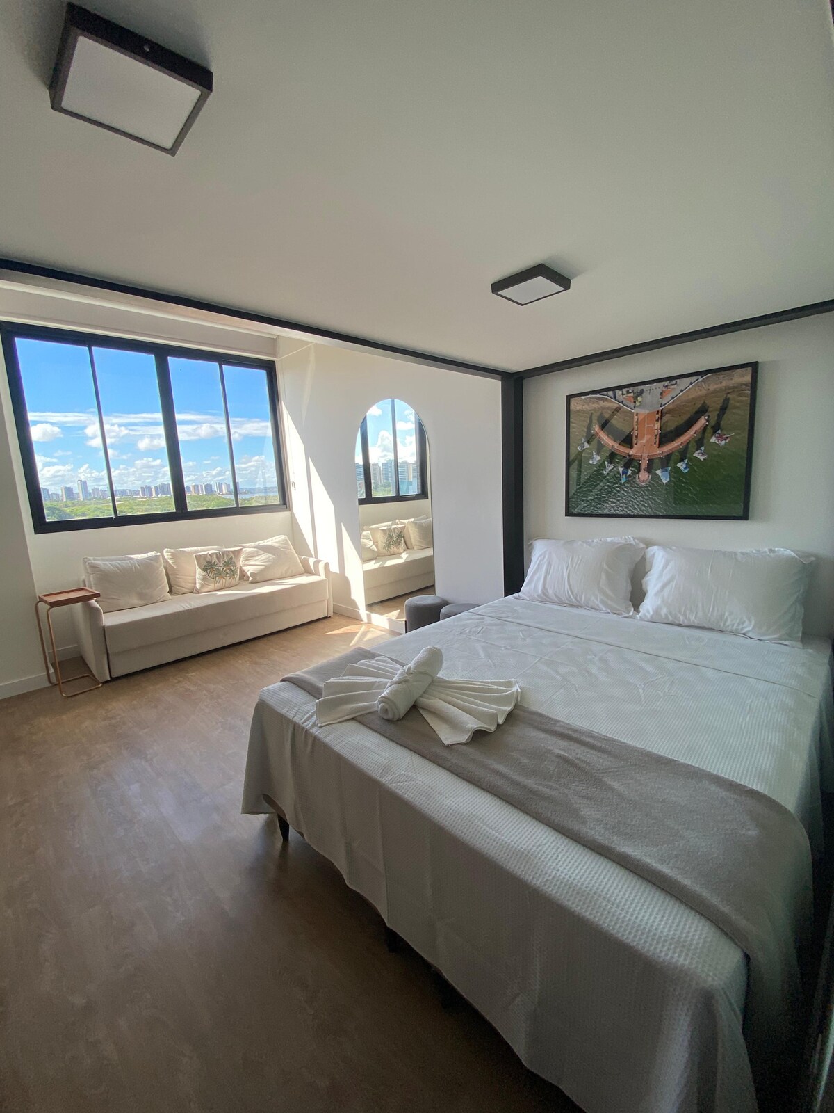 Ervaar Aracaju in stijl in deze multifunctionele studio! Gelegen in Coroa do Meio, bevindt u zich op loopafstand van Shopping RioMar (180 m) en dicht bij Orla da Atalaia (2,8 km). Perfect voor maximaal vier gasten, het biedt comfort, snel internet en gemak met automatisch inchecken. De ruimte is nieuw, modern, voorzien van airconditioning en ontworpen voor mensen die op zoek zijn naar productiviteit of rust. Onverslaanbare locatie voor wie gemak en mobiliteit wil.