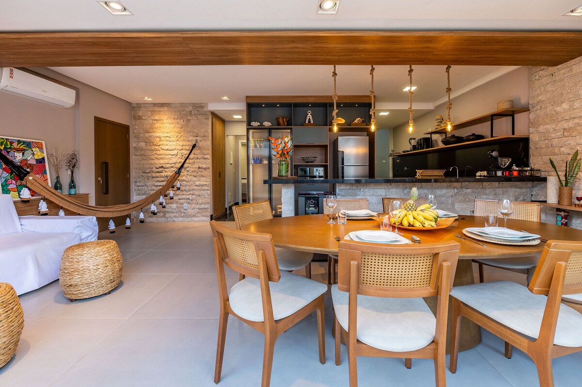 Luxe appartement Pé na Areia – Barra Grande, Maraú (BA) Geschikt voor maximaal 6 personen in 2 suites met airconditioning. Het heeft een volledige keuken, geïntegreerde woonkamer en eetkamer en een elegante inrichting. Het ligt in een appartement aan het strand en biedt comfort, exclusiviteit en direct contact met de zee. Ideaal voor gezinnen en groepen die willen ontspannen in een van Bahia's meest paradijselijke bestemmingen.
