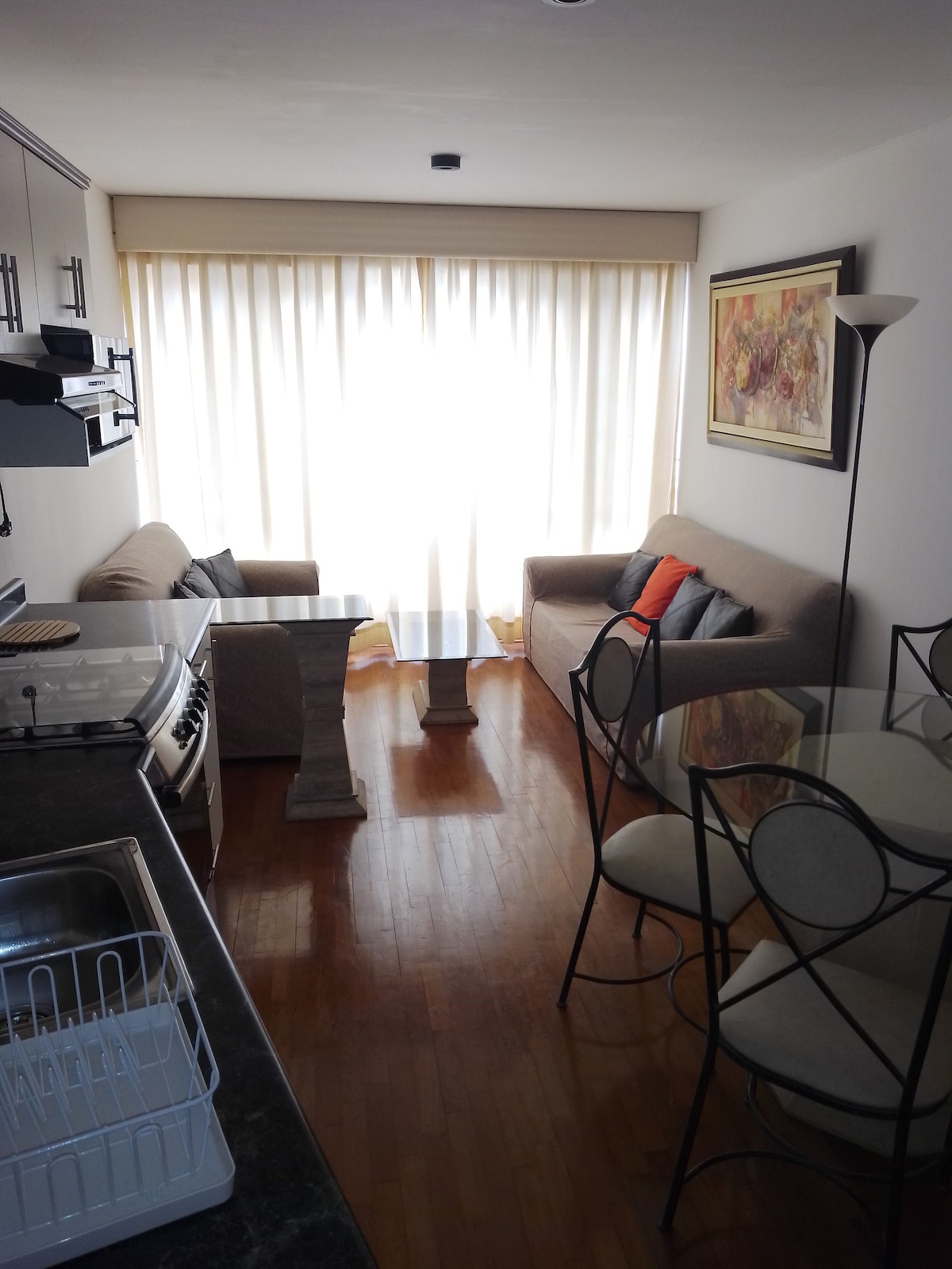 Appartement gelegen in het hart van Miraflores , op vijf minuten van het centrale park Miraflores en op vijf minuten van Larco Mar. Gelegen op de 10e verdieping, het heeft zeer goede verlichting, het is klein maar erg gezellig , een echte aanrader voor koppels die alleen reizen, het heeft een ruime en moderne keuken , naast alle voorzieningen om je thuis te voelen, wordt het appartement niet met iedereen gedeeld is volledig onafhankelijk en privé, flexibel zowel bij in- als uitchecken en uitchecken .