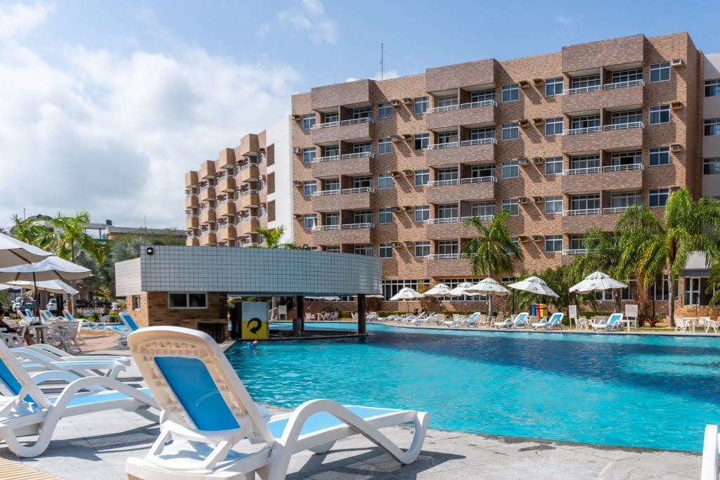 Flat met uitzicht op het zwembad in het beste resort van de lakens van Maranhão, 2 slaapkamers, woonkamer en Amerikaanse keuken. Uitzicht op het zwembad, capaciteit voor maximaal 6 personen, volledig ingericht, met servies, beddengoed en bad. Gebruik de hotelstructuur, schoonmaakster, zwembad, terras, speelkamer en fitnesscentrum. Apartamen met balkon. Appartement met clothesdecama en bad. Als je wilt gebruiken, wordt de was na het reserveren in rekening gebracht door de verhuurder Enxovalcomplet150,00 bed/bad Ontbijt niet inbegrepen in de valatary