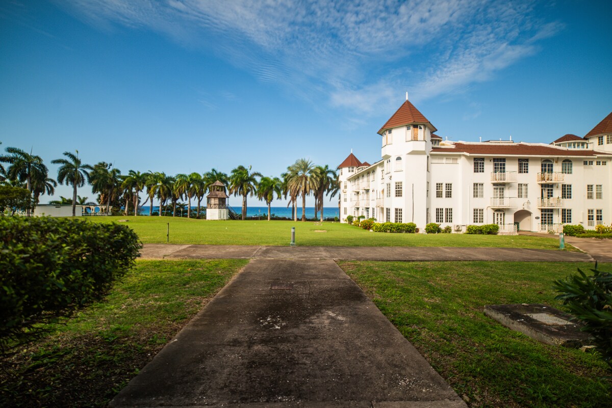 Volledig ingericht studio-appartement, direct gelegen aan een wit zandstrand bij Sea Castles Condo langs de elegante gang van Montego Bay. Gelegen aan de snelweg Noordkust ligt het complex op 10 minuten van de luchthaven MBJ, op 15 minuten van het stadscentrum, met toegang tot alles op het eiland. Het complex heeft 24-uursbeveiliging, zwembad, strand, bar en lokaal restaurant met een ontspannen sfeer voor zowel werkende professionals als vakantiegangers die zich na een lange dag willen vermaken.