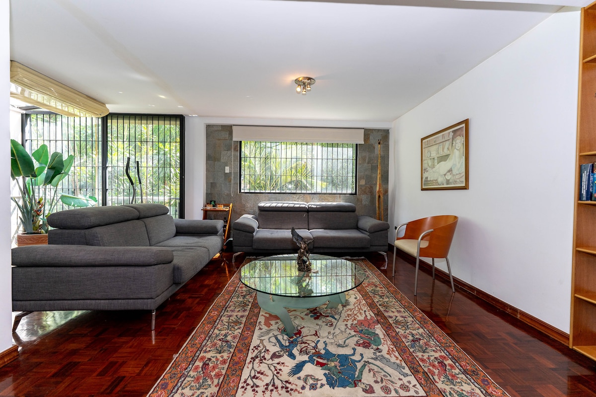 Geniet van een rustige, veilige, gemakkelijk toegankelijke en super goed gelegen accommodatie in het oosten van Caracas, Las Mercedes, op 200 meter van Teatro Escena 8 en op minder dan 900 meter van de hotels Eurobuilding en Tamanaco. Verscheidenheid aan winkels, CC El Toulon, CC Paseo Las Mercedes, restaurants, klinische supermarkten en diagnostische centra, diensten zoals SAIME-Las Mercedes, enz. Een rustig gebouw van slechts 4 verdiepingen, dicht bij alles, maar weg van de drukte.