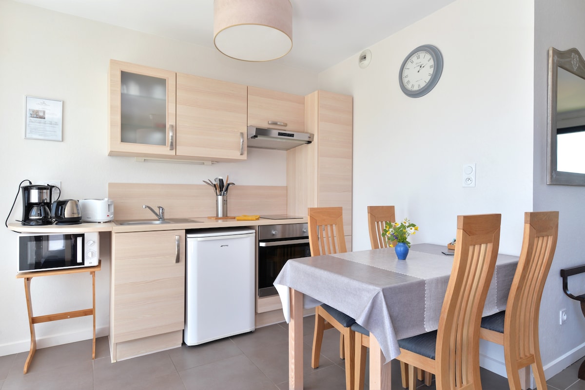Kom en ontdek de Elzas in dit appartement in loftstijl van 50 m2, 4 sterren , met een panoramisch uitzicht op de wijngaard. Capaciteit voor twee volwassenen en twee kinderen. Dichtbij de kerstmarkten van Riquewihr(5 min) Kaysersberg (10 min) en Colmar(15 minuten) is deze accommodatie het ideale startpunt voor een bezoek aan de Elzas. Je hebt een eigen buitenruimte naast terras met uitzicht op het dak. Toegang is volledig onafhankelijk. Er is een ontspannende ruimte voor je gereserveerd met een spa