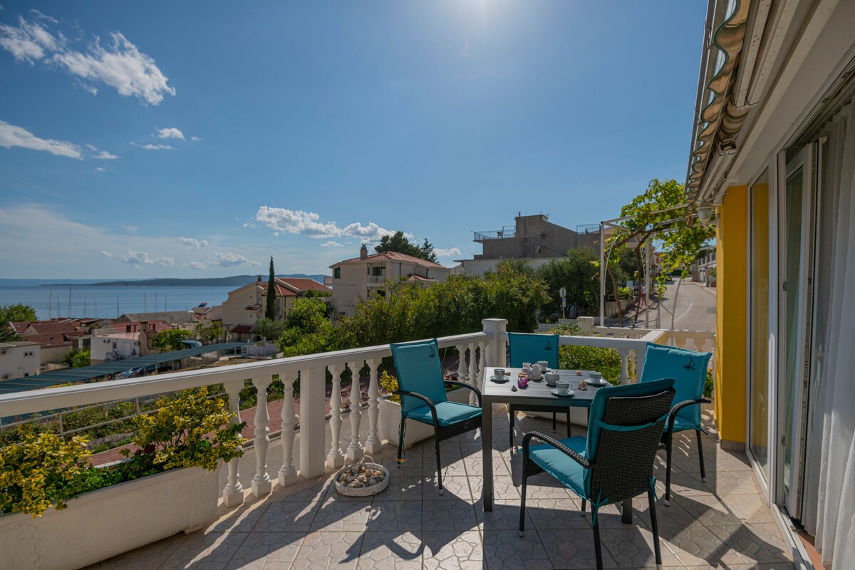 Dit appartement biedt je het beste uitzicht op zee en de stad. Het heeft twee slaapkamers met tweepersoonsbedden, twee badkamers, volledig uitgeruste keuken met eethoek en ruime woonkamer. Appartement biedt je perfecte zomeravonden waarin je kunt genieten op een terras van 55 m2 met hot tube en een eetmeubilair in de buitenlucht. Appartement heeft een eigen parkeerplaats, gratis wifi en elke kamer in het appartement is voorzien van airconditioning.