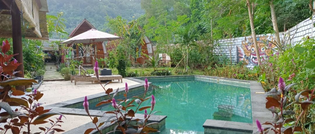 Anda pasti tak ingin pulang saat menginap di tempat saya yang sederhana dan unik ini. Tempat yang di kelilingi pepohonan yang hijau, dan gunung gunung, di temani dengan suara burung dan udara di pagi hari yang sejuk. Dan lokasi penginapan yang jauh dari pemukiman dan tempat yang tenang. Akses ke beberapa air terjun dan tentu aktivitas penduduk lokal yang dapat menarik perhatian. Dan kami akan membimbing anda untuk menjelajahi hutan kami dan sungai sungai kami yang masih alami.