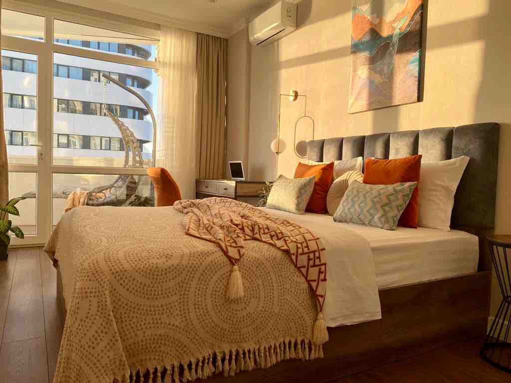 Premium appartement, in een nieuw modern huis met uitstekende infrastructuur. Ruime indeling: slaapkamer, woonkamer en keuken. De perfecte combinatie van comfort en gezelligheid voor je verblijf. Kenmerken: - Een panoramisch uitzicht op zee en majestueuze bergen; - Huis met fitnessruimte, zwembad en 24 uur beveiliging; - Rustige, groene buurt weg van de drukte van de stad - Er is alles wat je nodig hebt om te ontspannen en te koken; - Voel jezelf thuis, vanaf de eerste minuut van je vakantie.