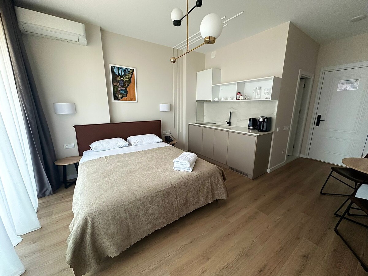 Op een steenworp afstand van de zee, gebouwd voor comfort en rust. Neem je badpak en een goed humeur mee. ✔ 2-5 minuten lopen naar het strand en de levendige New Boulevard 🏖️ ✔ Fitnessruimte, sauna en zwembad in het gebouw — 20% korting voor gasten (extra kosten) 🏋🏻♀️💧 ✔ Privéparkeerplaats op aanvraag (extra kosten) 🅿️ ✔ Comfortabel bed met verduisteringsgordijnen 😴 ✔ Complete keuken 🍳 ✔ Wasmachine, strijkijzer 🧺 ✔ Gezellige koffiezaak direct bij de ingang - perfect voor je ochtendkopje ☕✨ Perfect voor werken op afstand, creatieve flow en ontspanning 🦦🌊