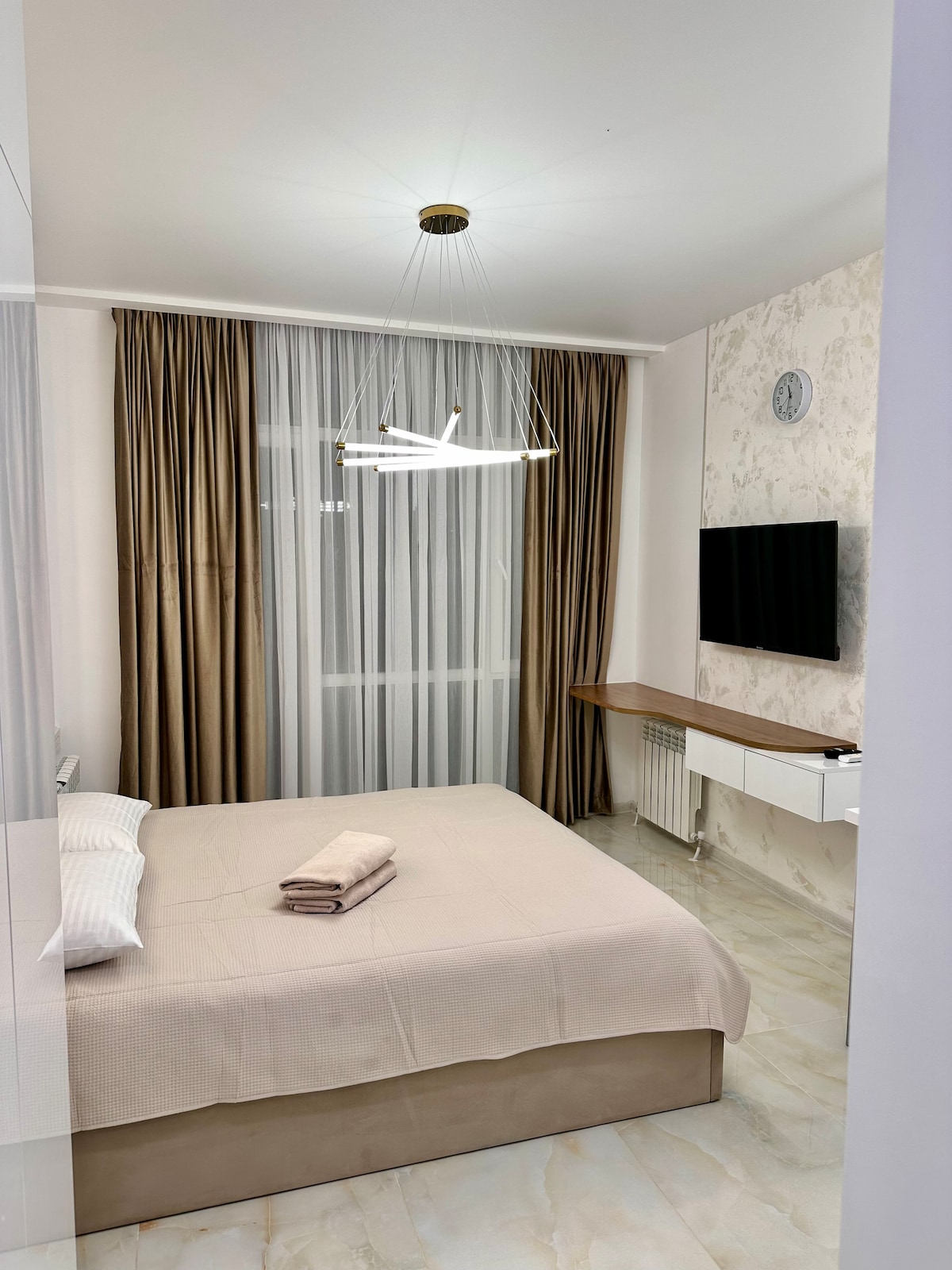 Het appartement is gelegen in het absolute stadscentrum, Shartava Street first-tier uitzicht op de stad met spectaculaire zonsondergangen over de Zwarte Zee van Batum.Het appartement behoort tot een hoogbouwappartement in hotelstijl in hetzelfde gebouw van miljardair hotel&casino, kan gemakkelijk genieten van het zwembad, de fitnessruimte, het restaurant, het spa-centrum van het hotel. (Hotelfaciliteiten zijn tegen een toeslag) Carrefour ligt op één minuut lopen en een verscheidenheid aan restaurants, bars, banken en andere voorzieningen liggen op minder dan een minuut lopen.Spectaculaire Musical Fountain and Landscape Drive in Batumi, ook op loopafstand.Er is ook een onlangs geopend miljardairs casino in hetzelfde gebouw, met een verscheidenheid aan entertainment en recreatieve faciliteiten. Een minuut kun je genieten van het bruisende van de stad, een minuut, en je kunt ook terugkeren naar een rustige plek met elegantie en stijl! 24/7 huishoudservice om er zeker van te zijn dat je een perfecte vakantie in Batong hebt!