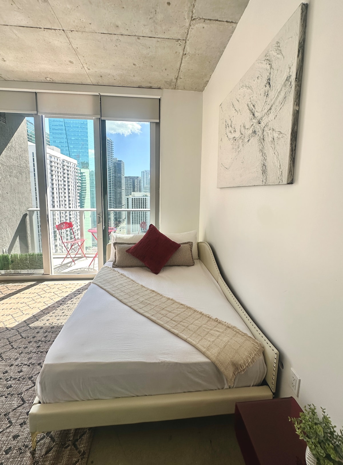 Amazing open layout studio-apartment to stay in the heart of Downtown Miami. Excellent location, FREE PARKING Garage. Great restaurants, trendy shops, Bayside Marketplace, Whole Food market, the brand new Brightline Train terminal, and the Brickell City Center. Everything within walking distance. You will enjoy our place because of its centric location, the beautiful amenities, and modern ambience. This place is great for couples, solo adventurers, business travelers, and family with kids.