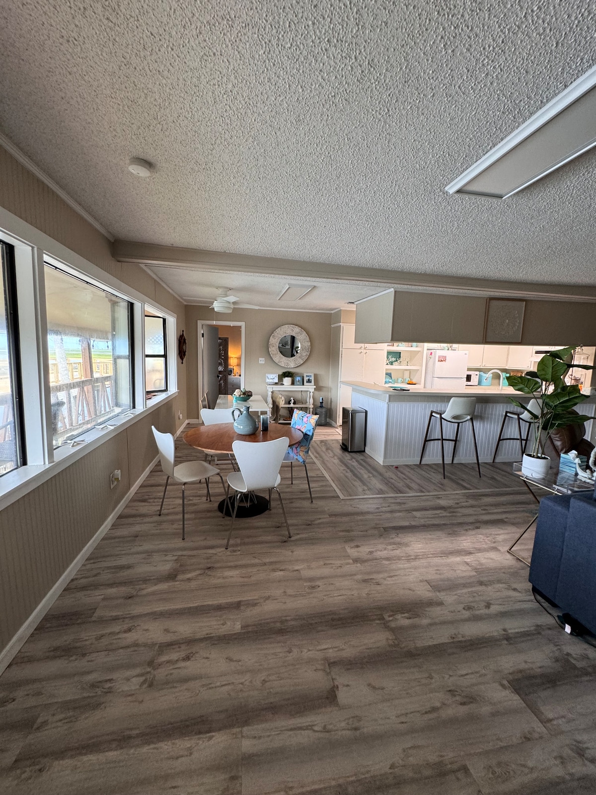 Extreem gezellige 1 slaapkamer, 1 badkamer aan het water, perfect voor koppels (max. 2 gasten). Deze rustige plek biedt een prachtig uitzicht op het water, overvloedige vogels en gemakkelijke toegang tot Galveston, Kemah, NASA en meer. Wat je geweldig zult vinden: Ontspannend Privé aanlegsteiger van twee verdiepingen om te vissen. Visserslicht van zonsondergang tot zonsopgang. Elektrische open haard. Volledig gevulde keuken Keurig voor één kopje Barbecue (gasten moeten na gebruik schoonmaken) Comfortabel queensize bed en smart-tv Kajaklancering (kajaks niet inbegrepen)