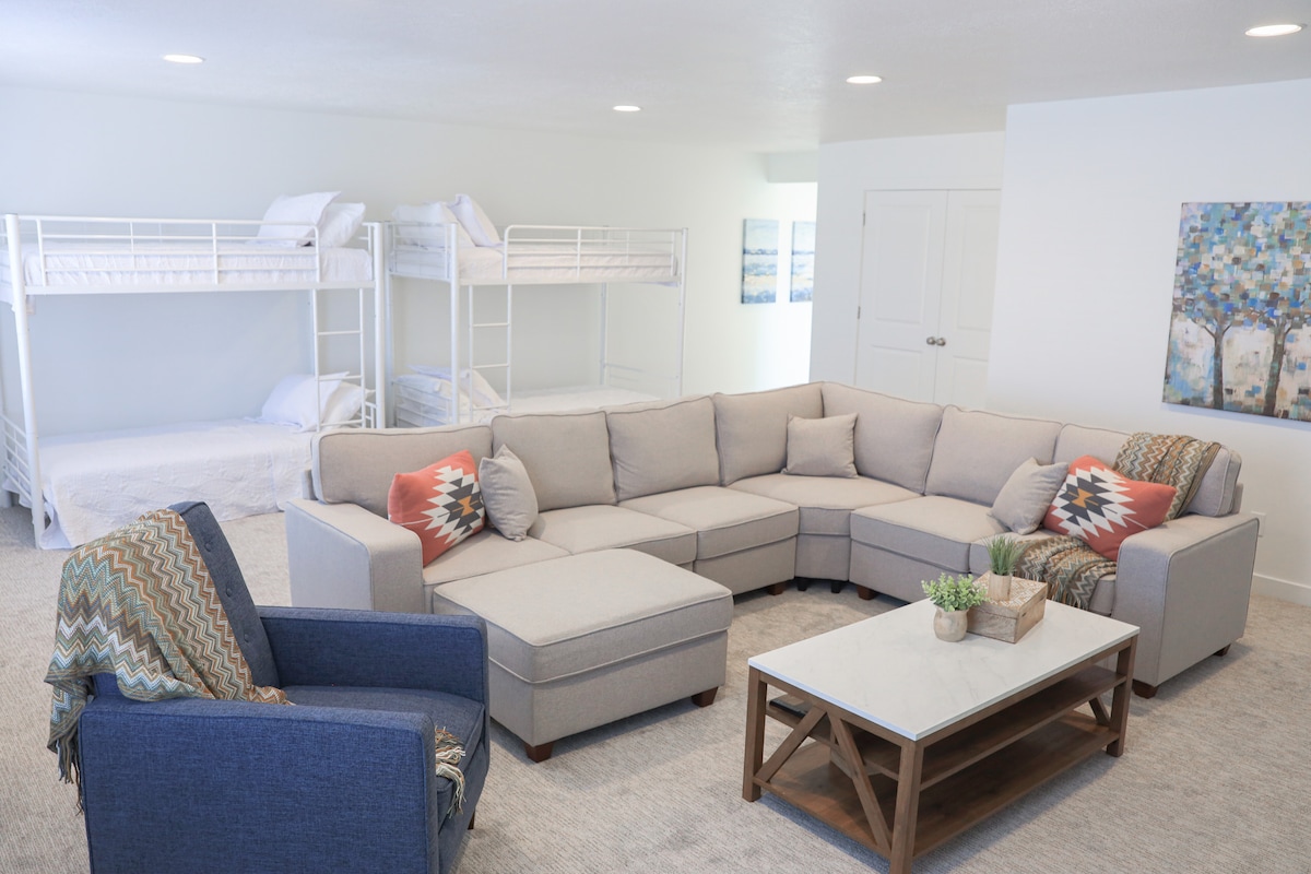 Prachtige gloednieuwe stadswoning (gebouwd in de zomer van 2020) in het hart van Garden City met alle extra 's. 22 slaapplaatsen! Geweldige locatie met directe toegang tot ATV/uTV bergpaden, 1 mijl van de jachthaven, korte wandeling naar het centrum van restaurants/shakes/boodschappen, aan de overkant van het overdekte zwembad/spa van de stad, augurkenvelden en skelters. Geweldige gratis voorzieningen, waaronder snel glasvezelinternet, 2 kajaks, tuinspellen, augurken peddels, kinderboeken/speelgoed, koffie en warme kokos, en nog veel meer!