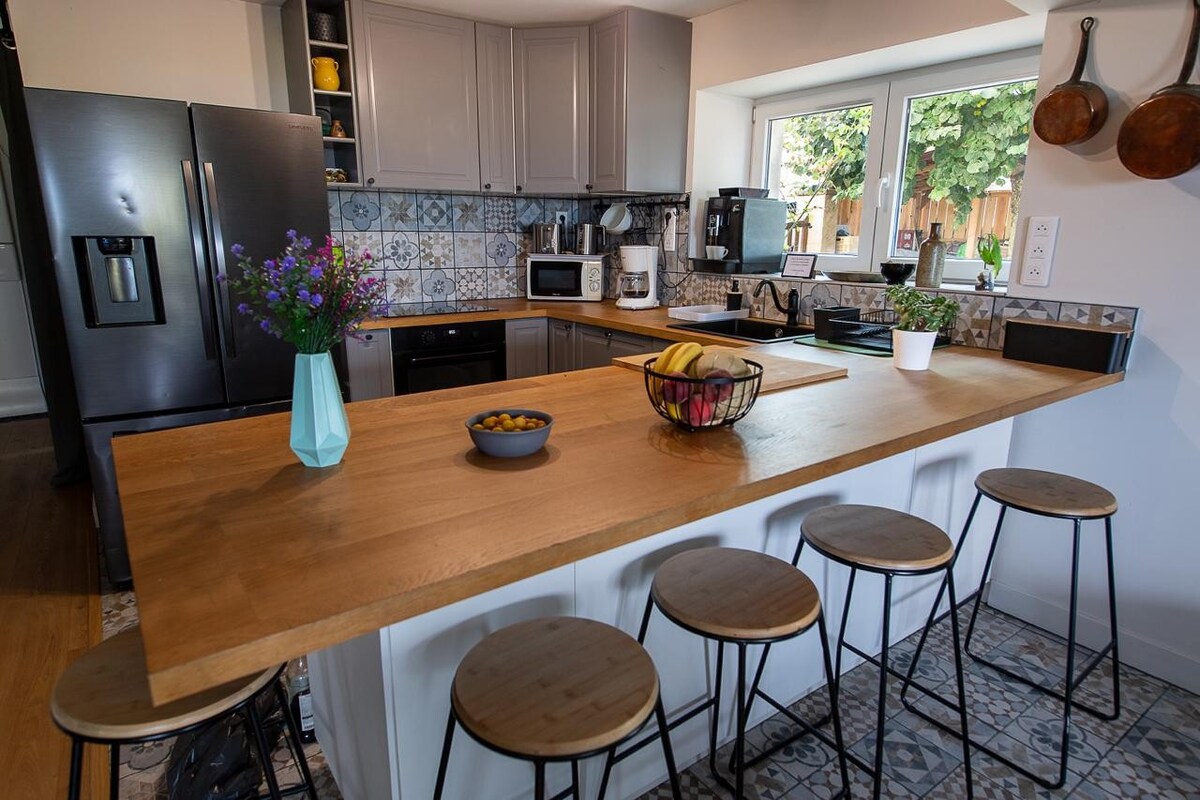 Speciale COVID-19-maatregelen zijn ingesteld om gasten en hosts te beschermen. De onverwachte haak is gelegen op een gemeenschappelijke binnenplaats, rustig groen. 10 minuten van het centrum van Mâcon en vlakbij het TGV-station, snelweg tol en RCEA. We wonen op het terrein en kunnen reizigers adviseren om de regio te ontdekken. Bezoek kelder- en proeverij, geiten- en veehouderij. Groene rijstrook in de buurt. Fietsenlening beschikbaar Gedeelde bibliotheek. Stapspelen. Prijzen: 100 euro per nacht