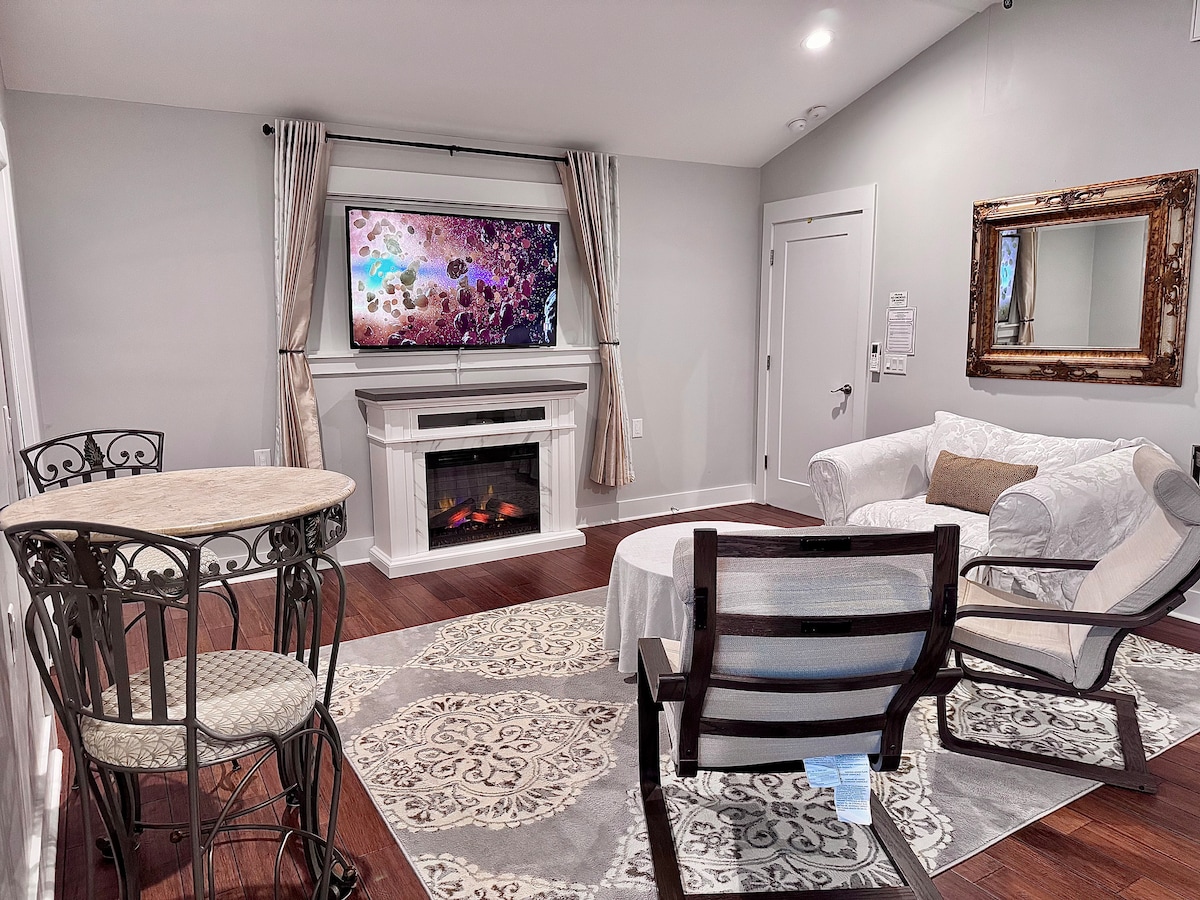 Deze suite, gelegen boven de vrijstaande garage, is voorzien van een tv, wifi, badkamer, kast, magnetron, minikoelkast, blender, strijkplank en een strijkijzer. We bieden milieuvriendelijke toiletartikelen en werken de inrichting voortdurend bij om de ervaringen van onze gasten te verbeteren. We streven ernaar om eventuele zorgen of verzoeken aan te pakken om je verblijf gedenkwaardig te maken. Houd er rekening mee dat gasten trappen moeten kunnen beklimmen. Gebruik alleen de AC-afstandsbediening om het apparaat koeler of warmer te maken, WIJZIG DE INSTELLINGEN NIET.