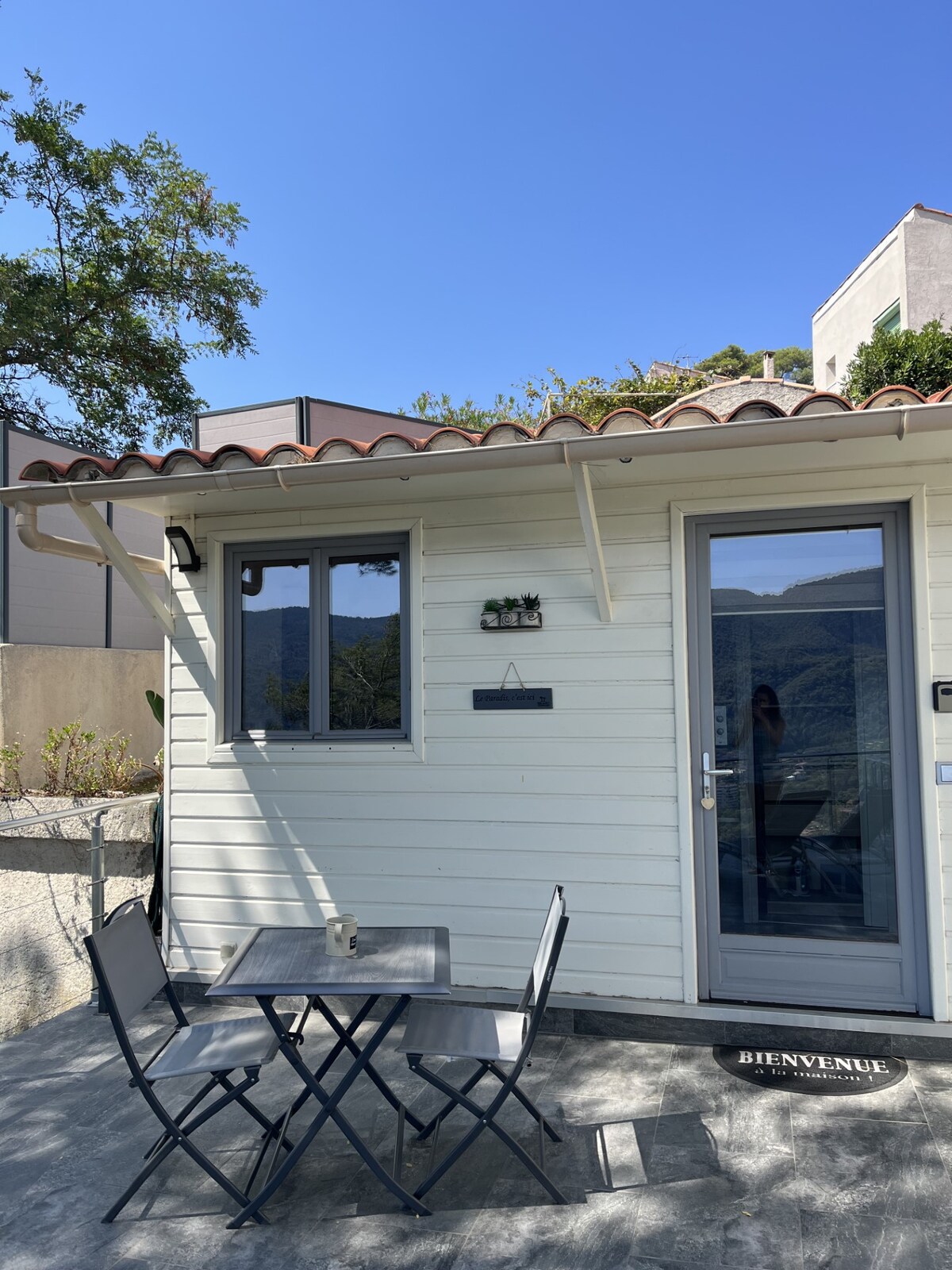 Wij bieden u dit charmante chalet van 20 m2 met een tuin van 70 m2. slaapbank met 17 cm dik matras. Het ligt op 1,3 km van het strand van Boccacabana, op 5 minuten fietsen, op 3 minuten rijden. Er zijn 2 muscle mountainbikes aanwezig. Bus op twee minuten afstand die je in 15 minuten naar Cannes brengt. We liggen op 5 min van het ind-gebied. Dit huisje is gelegen op ons terrein maar je hebt er geen vis-à-vis ons.