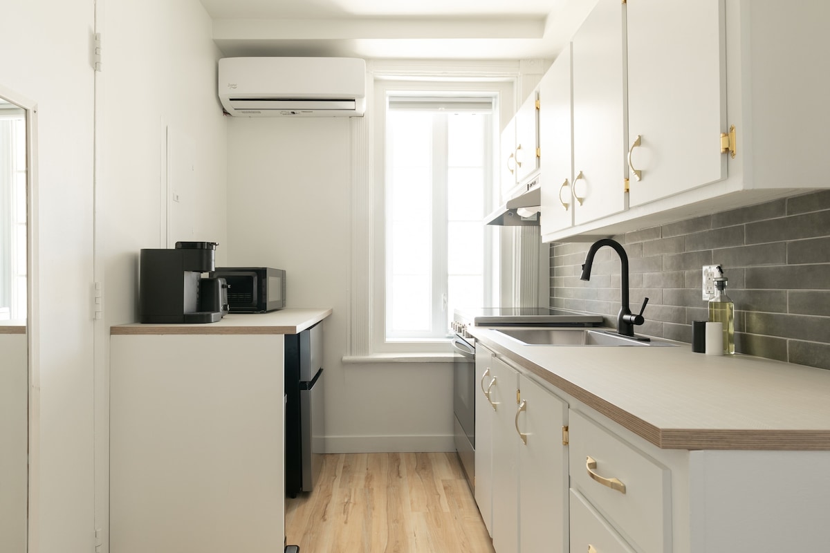 Situé en plein cœur du centre-ville, ce studio moderne offre un cadre urbain et chaleureux pour vos séjours professionnels ou touristiques. Doté d'une cuisine entièrement équipée et d’un lit queen confortable, il assure un séjour pratique et agréable. Bien que le stationnement ne soit pas inclus, plusieurs options de stationnement public se trouvent à proximité. À deux pas des restaurants, commerces et attractions locales, c’est le pied-à-terre idéal pour découvrir la ville à pied.