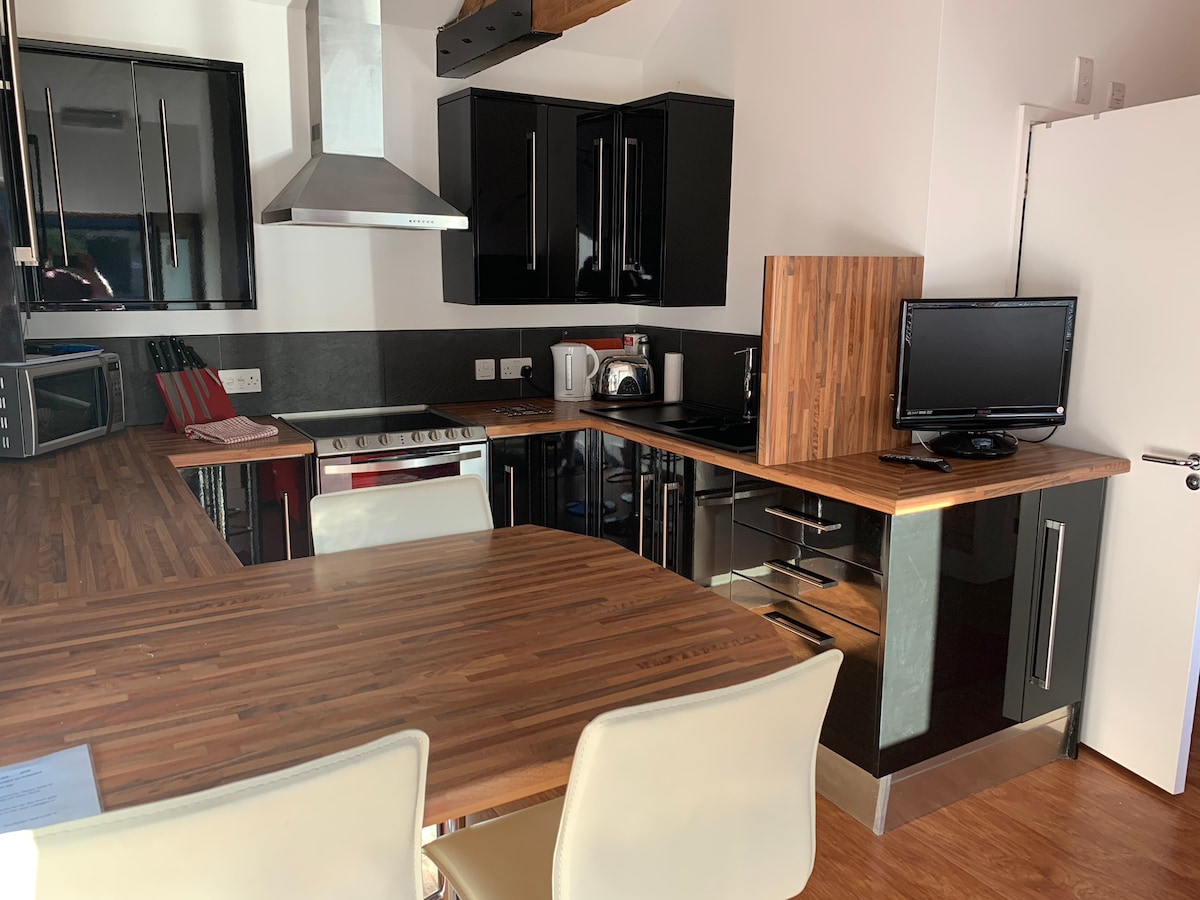 Een mooie verbouwde stallen met gewelfde plafonds. Gebaseerd op een boerderij op het platteland, maar nog steeds slechts 10 minuten van Bedford centrum. Ontbijtbar met krukken, tweepersoons slaapbank. Ritssluiting Tweepersoonsbed en kledingkast in de slaapkamer. Laat het ons weten als je eenpersoons- of tweepersoonskamers nodig hebt. Een volledig uitgeruste keuken met koelkast met kleine vriezer, wasmachine, vaatwasser. Eigen inloopdouche Smart-tv en zeer goede WiFi. Buitenzitje met bbq. Floodlit, Parking en Beveiligingscamera 's.